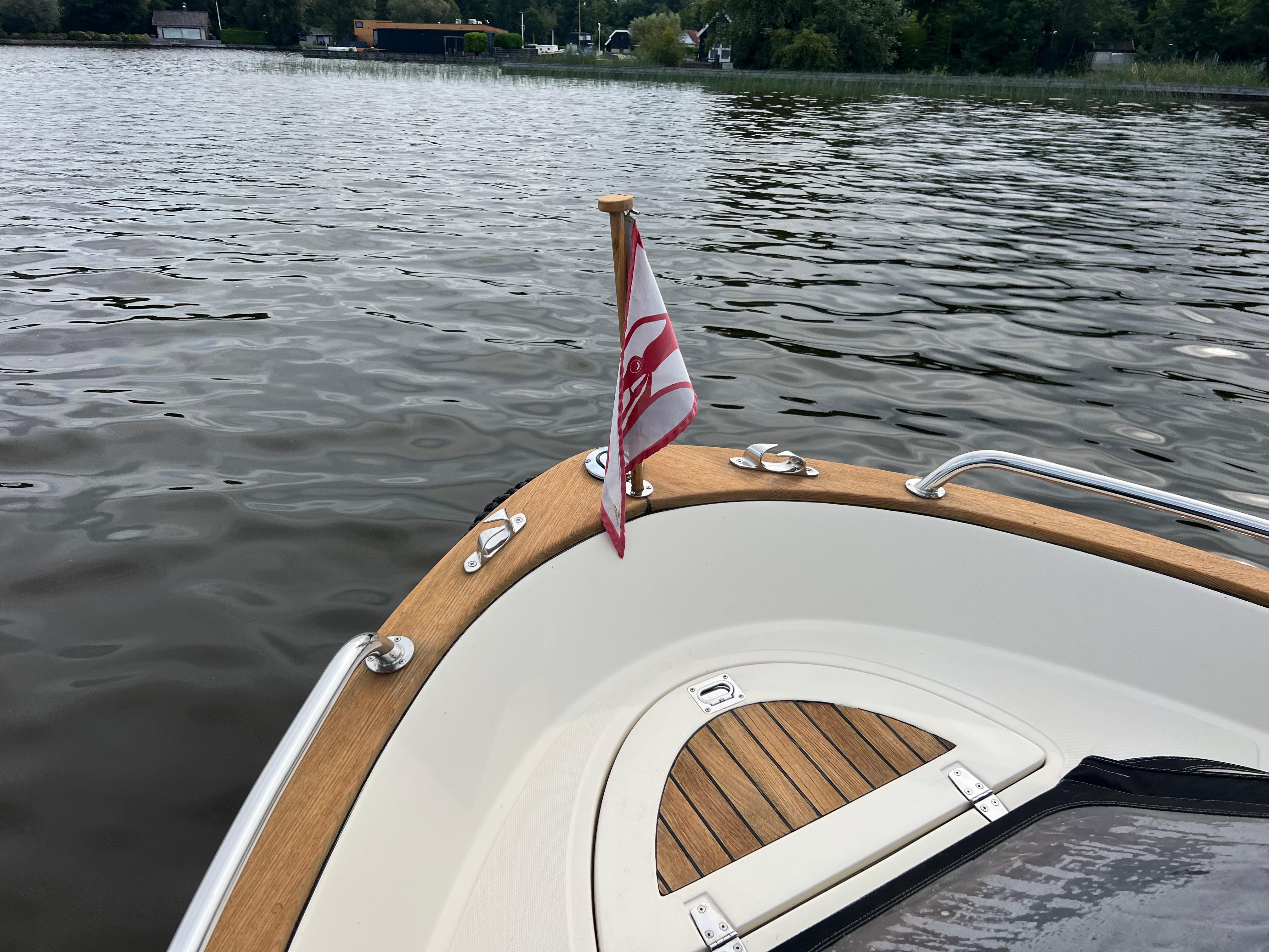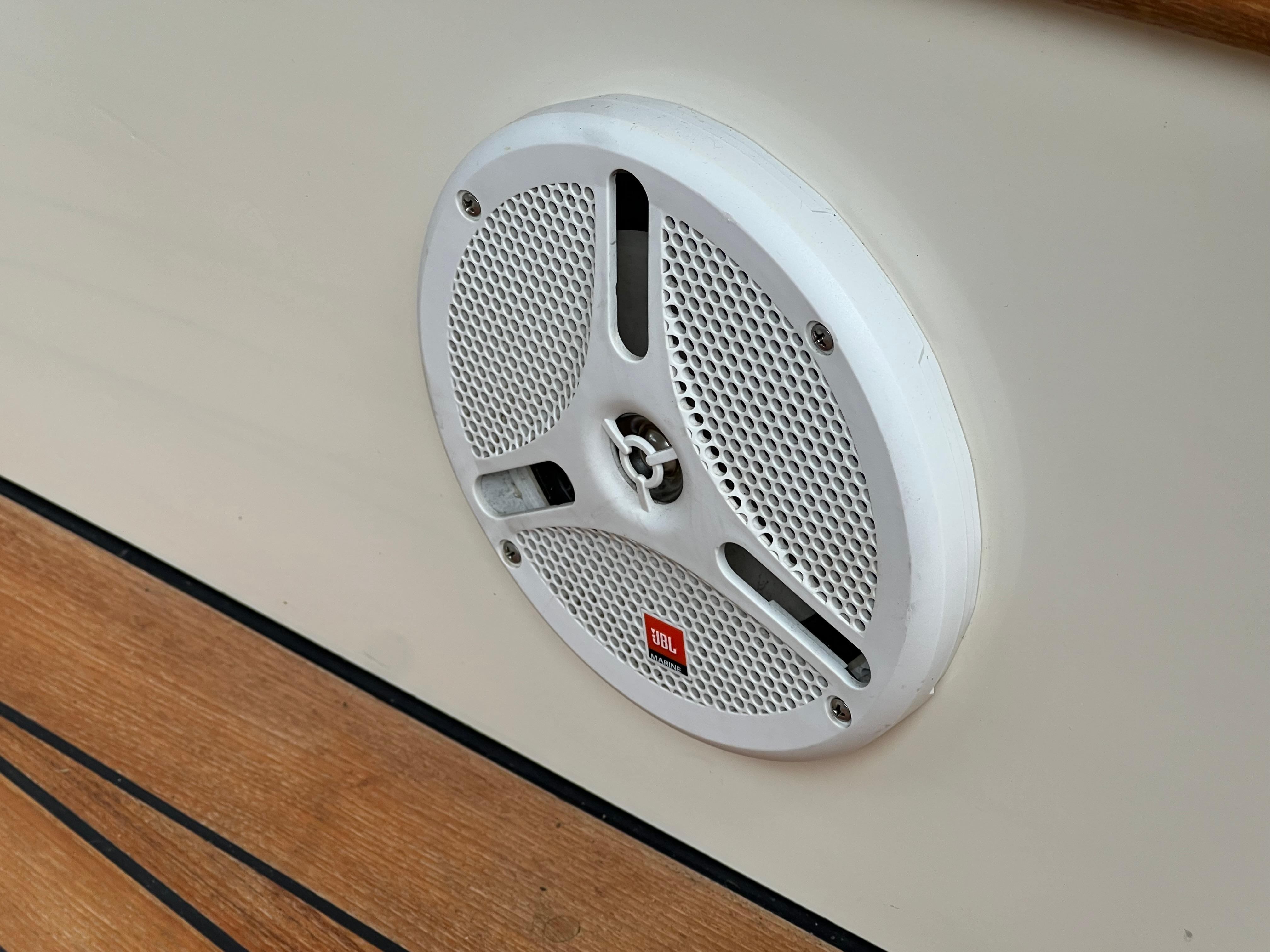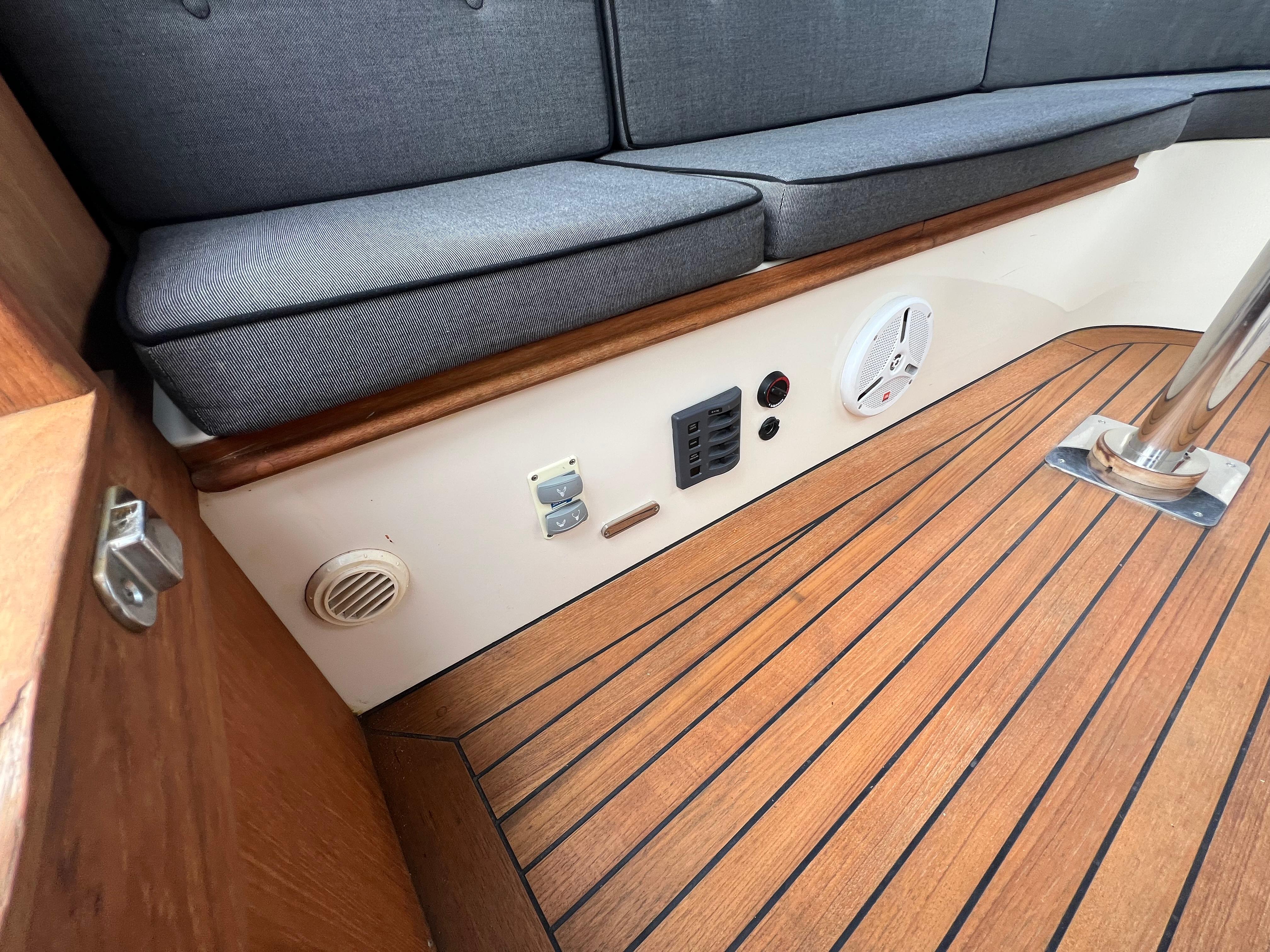 De sloep is voorzien van een luxe complete kussenset met zonnedek, buiskap, biminitop, boegschroef, koelkast, kuiptafel, toilet, radio- en audioinstallatie, dieptemeter, snelheidsmeter, wasbak, kuipverlichting, zwemplateau met zwemtrap, bekerhouders, zoeklicht, anker, fenders en lijnen.