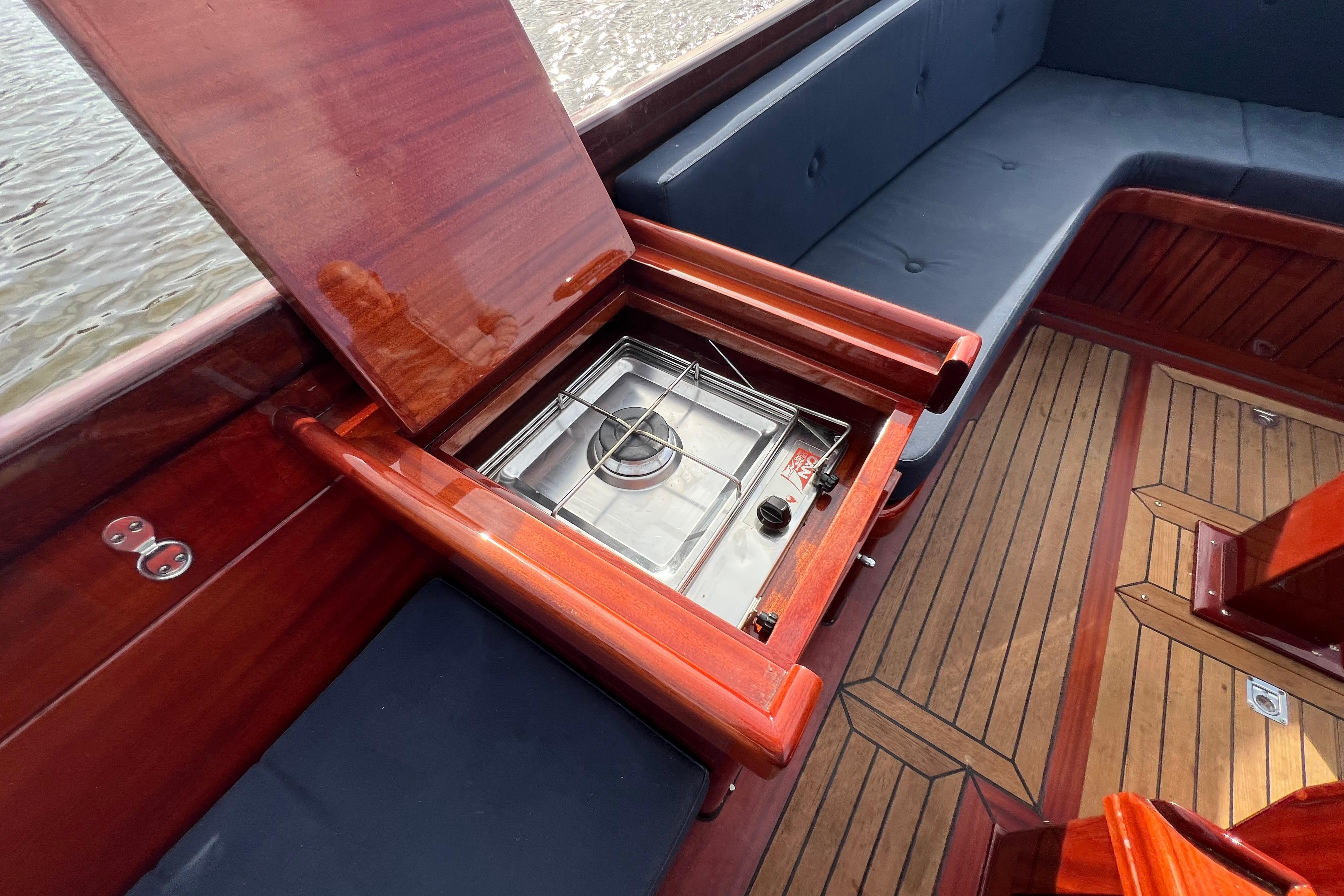 De Makma Oriƫnt 800 is een stijlvolle, luxe sloep met een tijdloos design en hoogwaardige afwerking in teak en mahonie. Dankzij haar ruime indeling, stille dieselmotor en uitstekende vaareigenschappen is ze perfect voor ontspannen tochten met familie of vrienden. Met deze sloep geniet je van pure klasse, comfort en betrouwbare Nederlandse kwaliteit op het water.