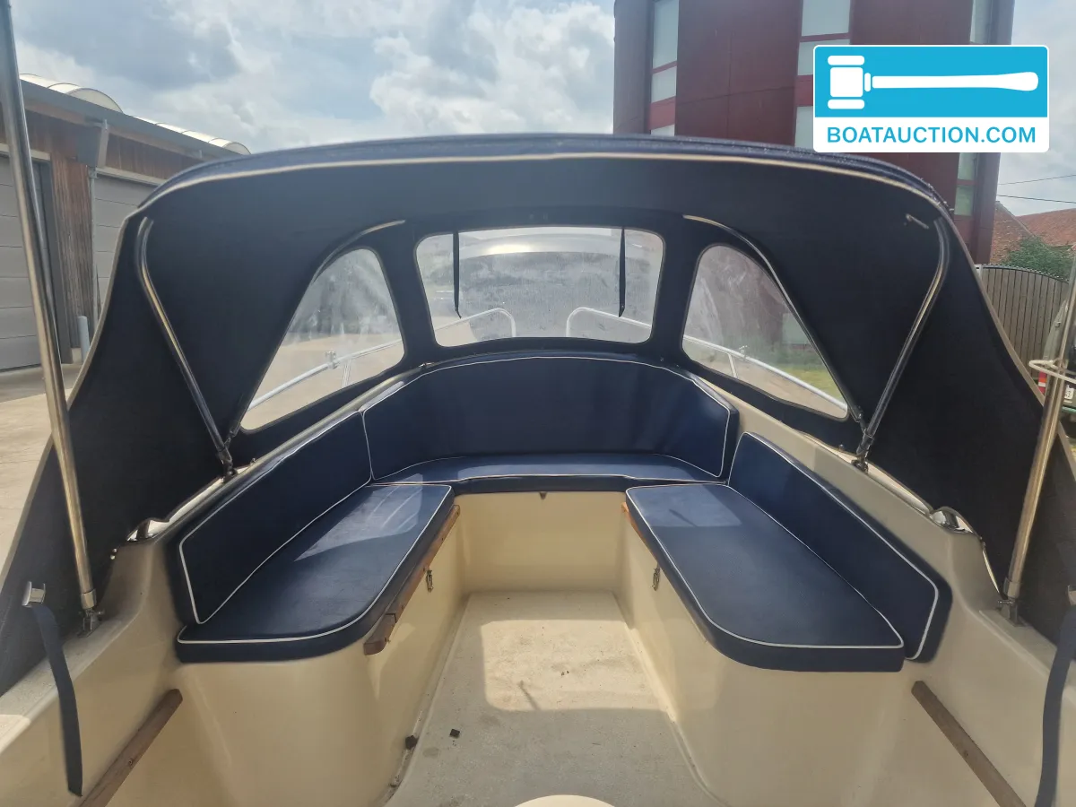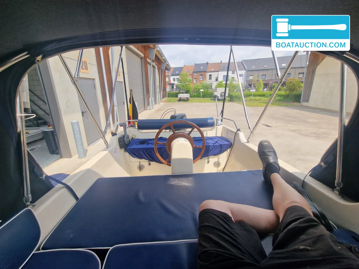 De besturing gebeurt via een stuurwiel dat zich binnenin de boot bevindt, wat zorgt voor een overzichtelijke en comfortabele bediening. De romp is vervaardigd uit polyester, een materiaal dat bekend staat om zijn duurzaamheid en onderhoudsgemak. De boot is uitgerust met een enkel roer en een anker met lijn, wat het mogelijk maakt om eenvoudig te ankeren op rustige plekken.
