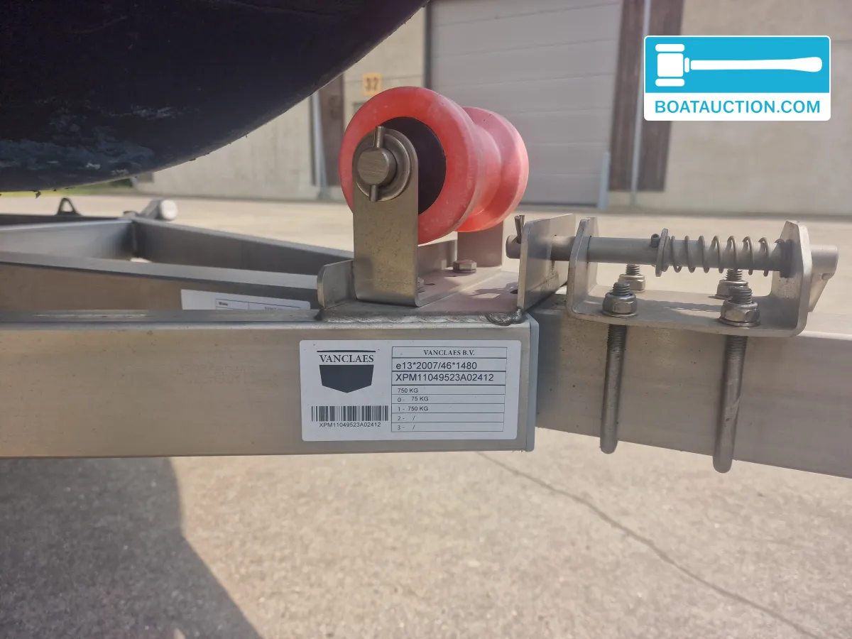 Trailer en transportmogelijkhedenBij de Myzyk 480 wordt een wegtrailer van het merk Van Claes meegeleverd, gebouwd in 2023. Deze trailer is kantelbaar, ongeremd en voorzien van een aanhangwagenlier, wat het laden en lossen van de boot vergemakkelijkt. Met een totaalgewicht van minder dan 750 kg is deze combinatie te trekken met vrijwel elk type personenwagen, zonder dat een speciale keuring of rijbewijs vereist is. Dit maakt de boot bijzonder geschikt voor wie op zoek is naar flexibiliteit en mobiliteit.