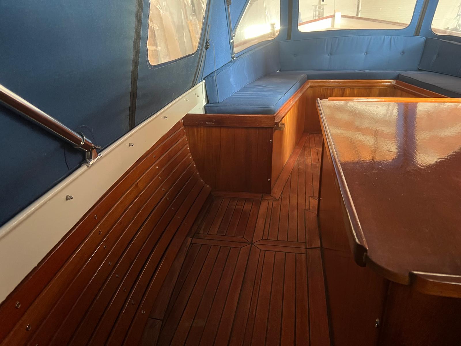 Het schip is voorzien van een complete buiskap en tent. Er is zeer weinig mee gevaren en het heeft al die jaren binnen gestald gestaan, wat de staat uitzonderlijk goed houdt.