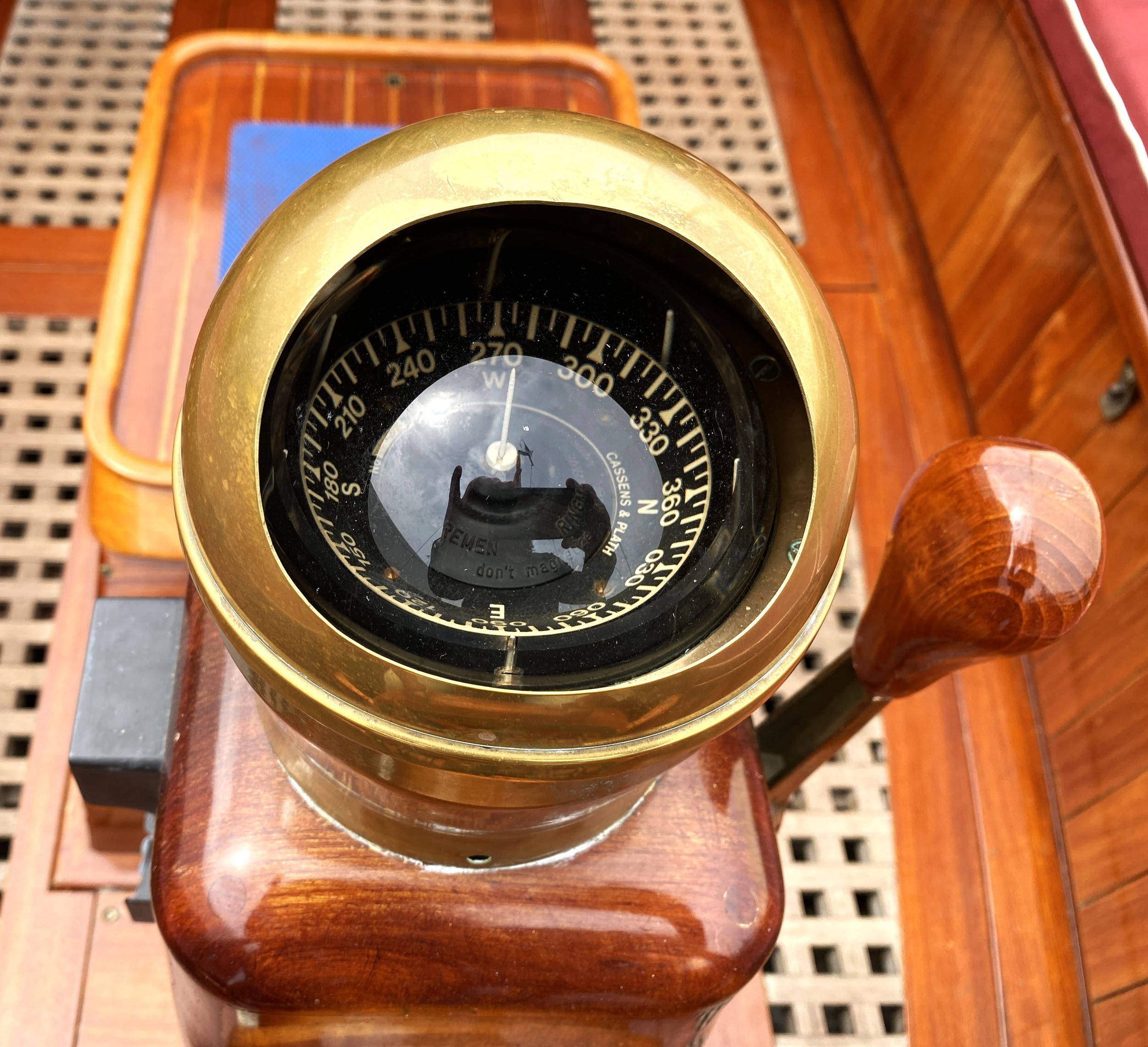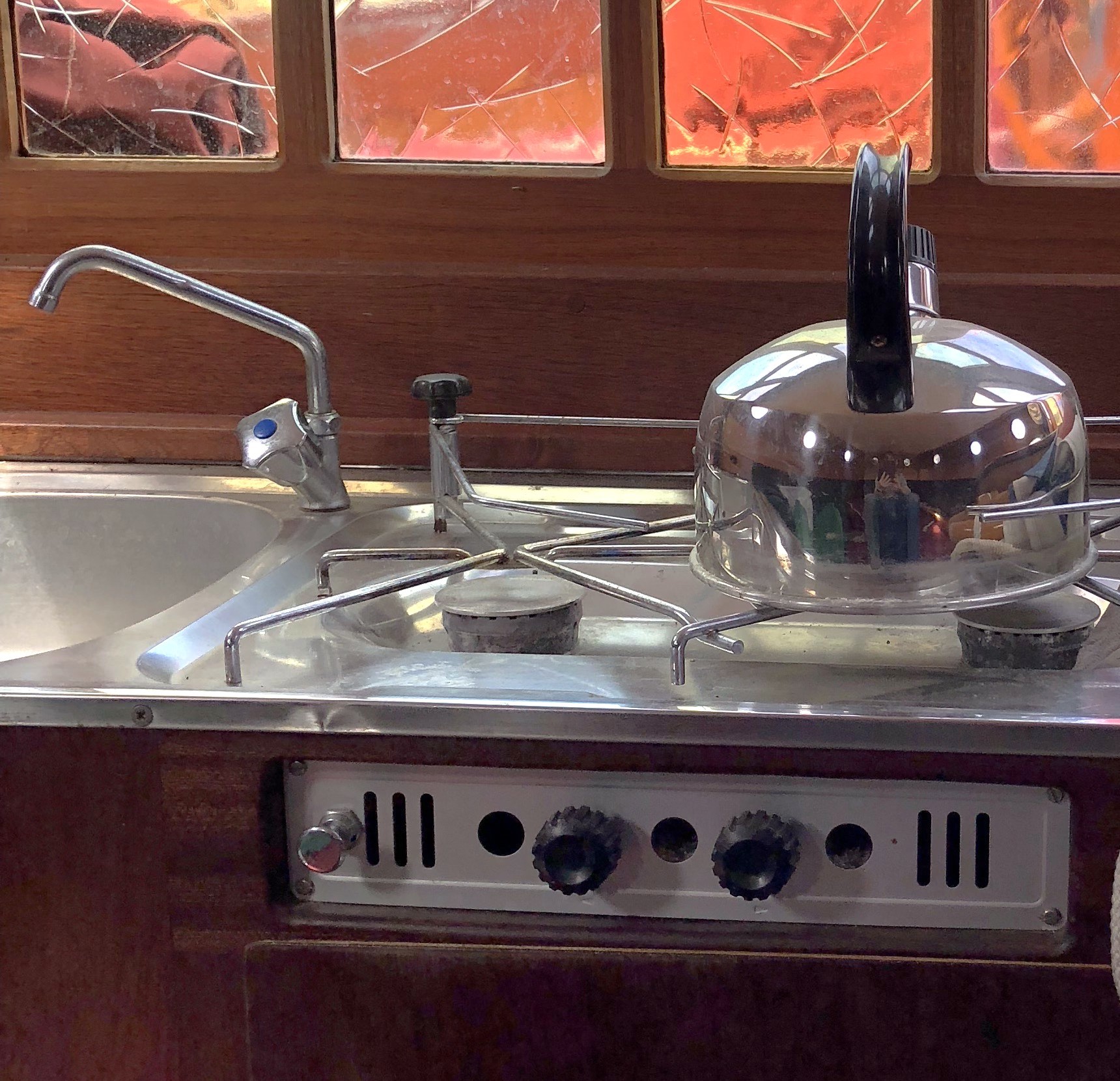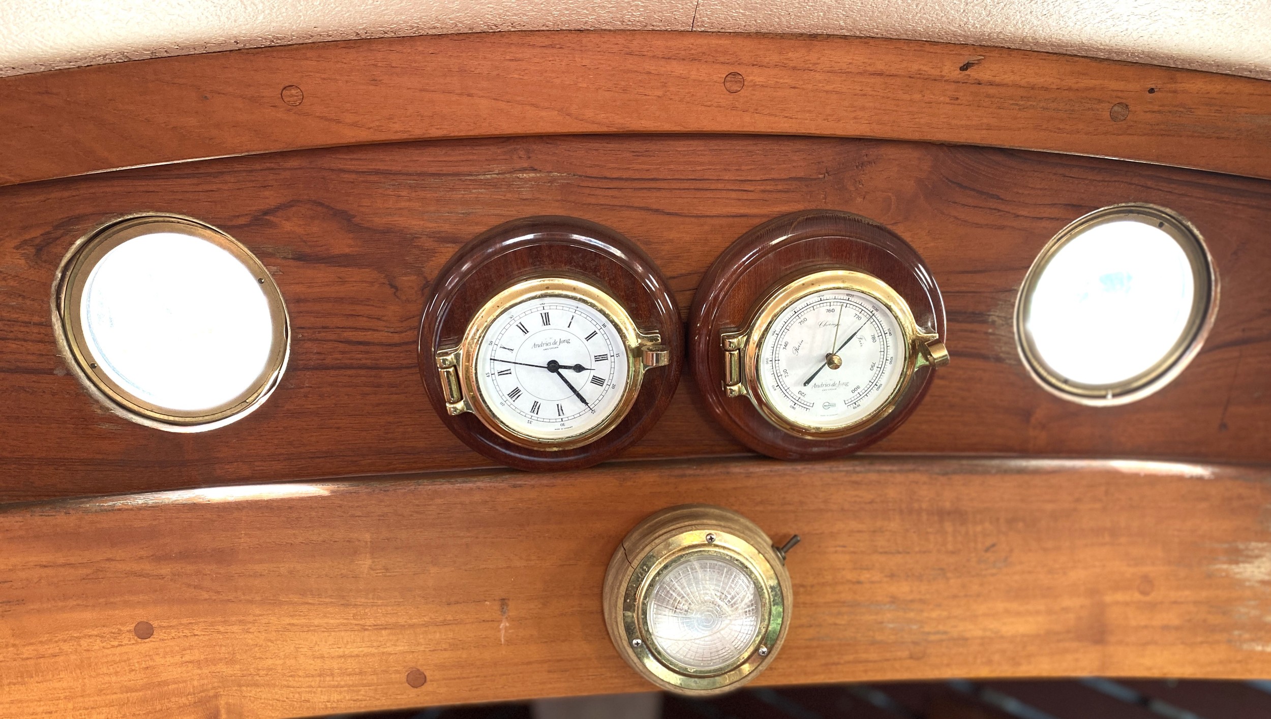 9 zitplaatsen buiten en 5 zitplaatsen binnen. De banken binnen zijn met een tussenstuk om te bouwen tot een ruim 2 persoons bed. Een fraaie en graag geziene verschijning op het water en te bezichtigen in Muiden.