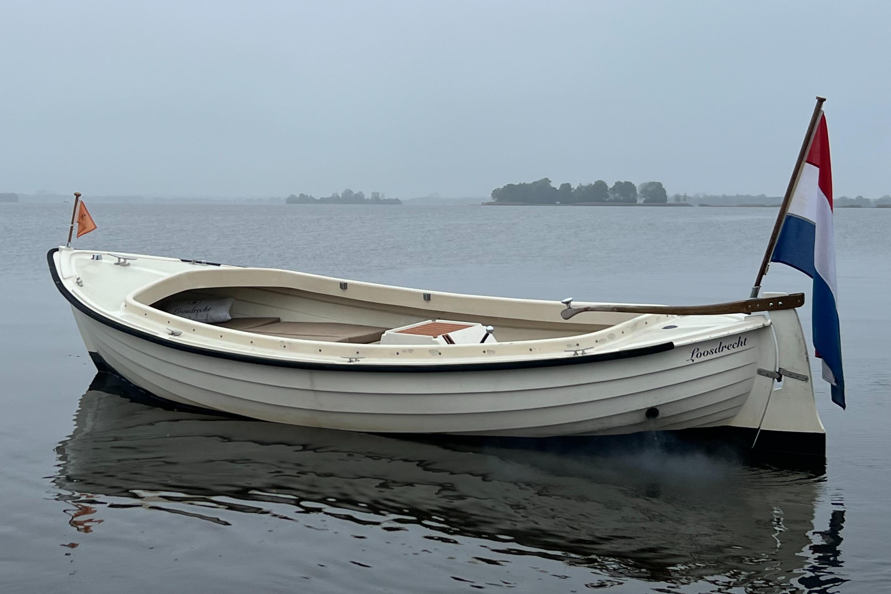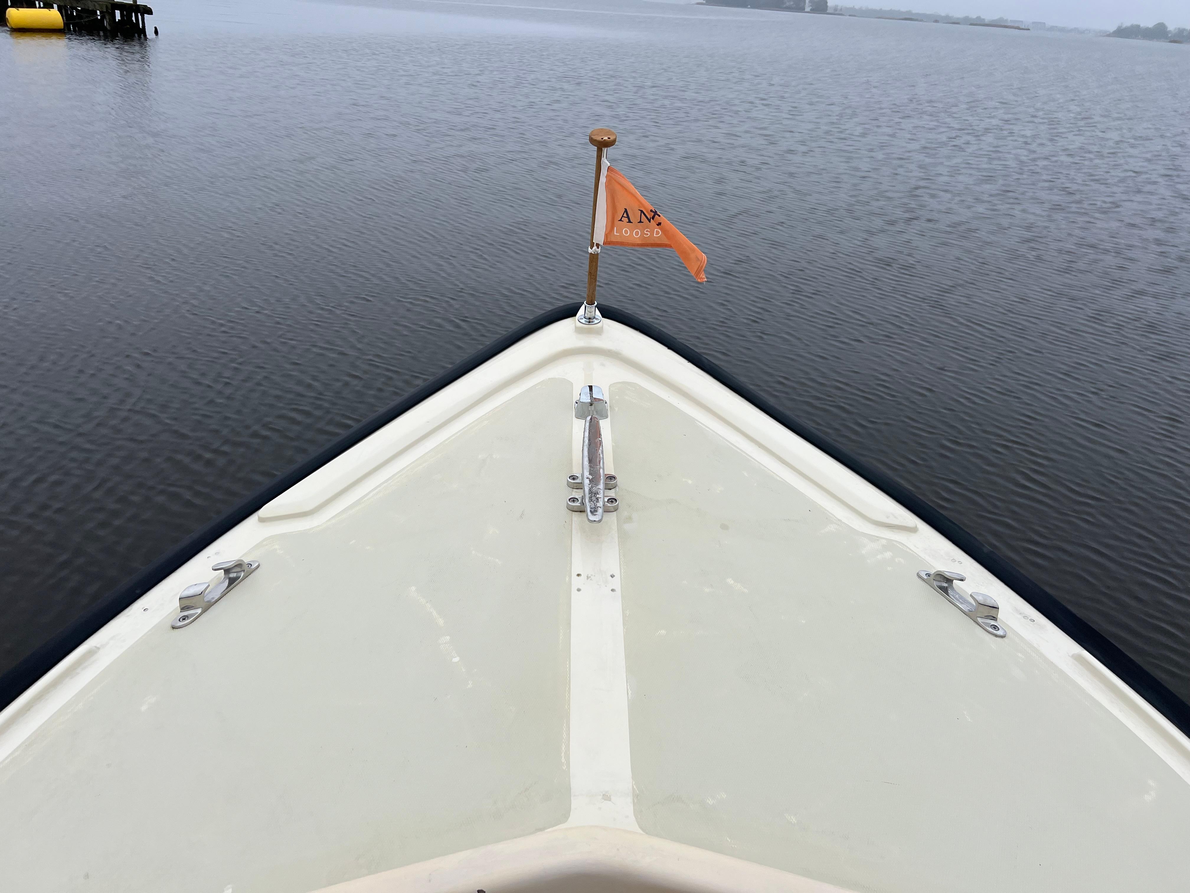 De sloep is voorzien van een helmstok, complete kussenset, zonnedek, buiskap, foamteak vloer en bekerhouders.