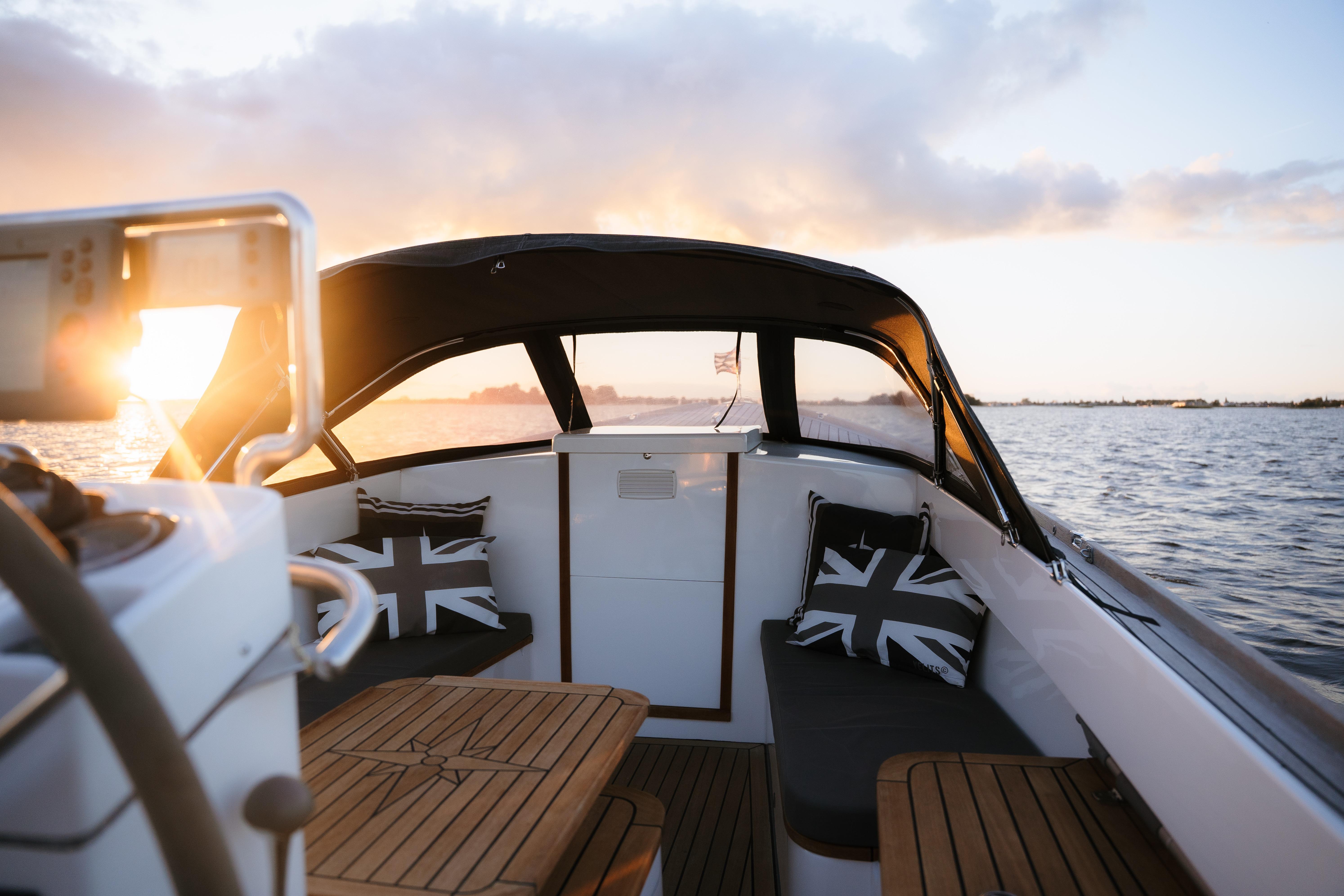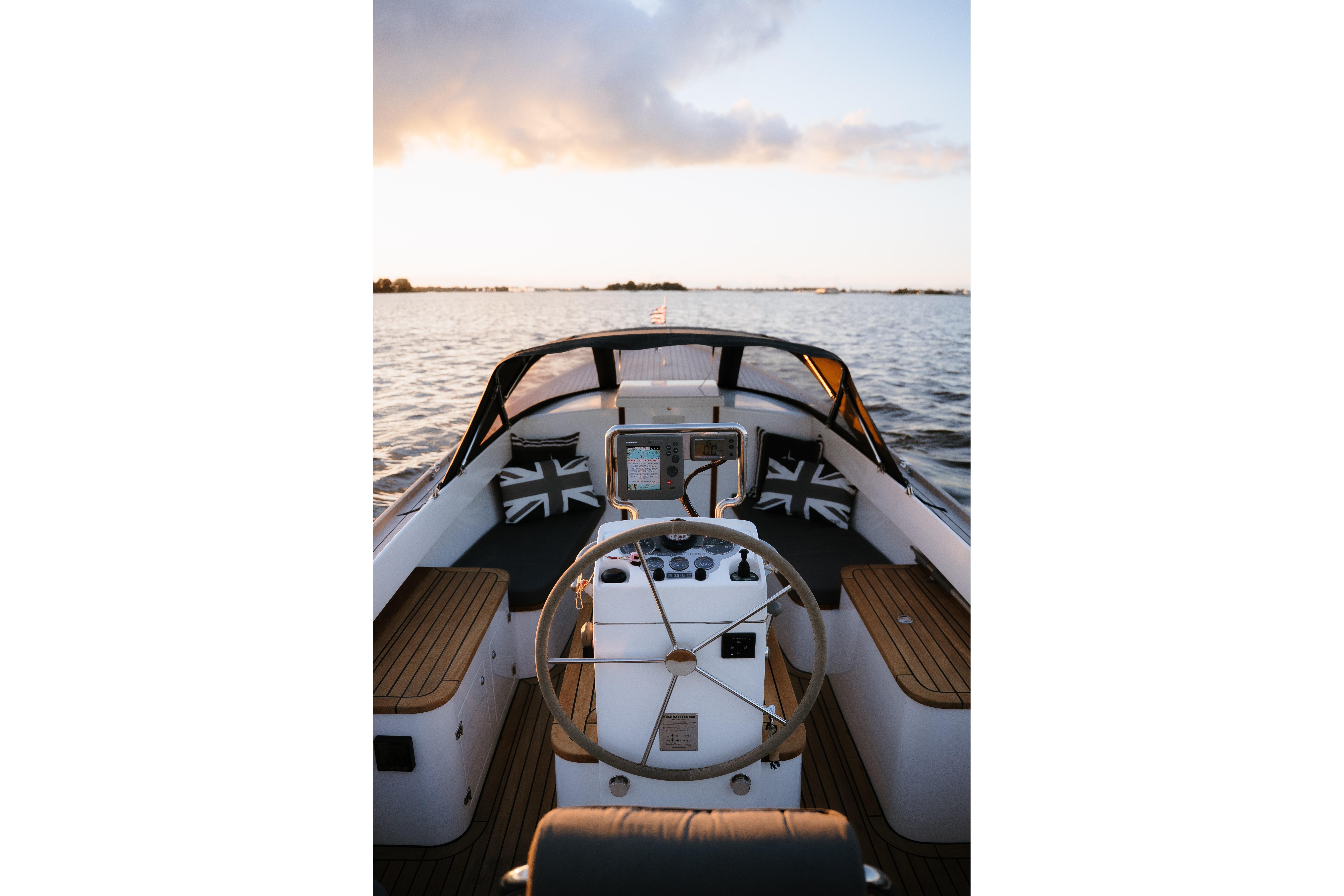Deze AdmiralsTender is voorzien van een complete kussenset, complete buiskap, biminitop, boegschroef (Lewmar 2.0 KW), navigatiesysteem, zwemplateau, trimset, zwemtrap en vele andere opties.