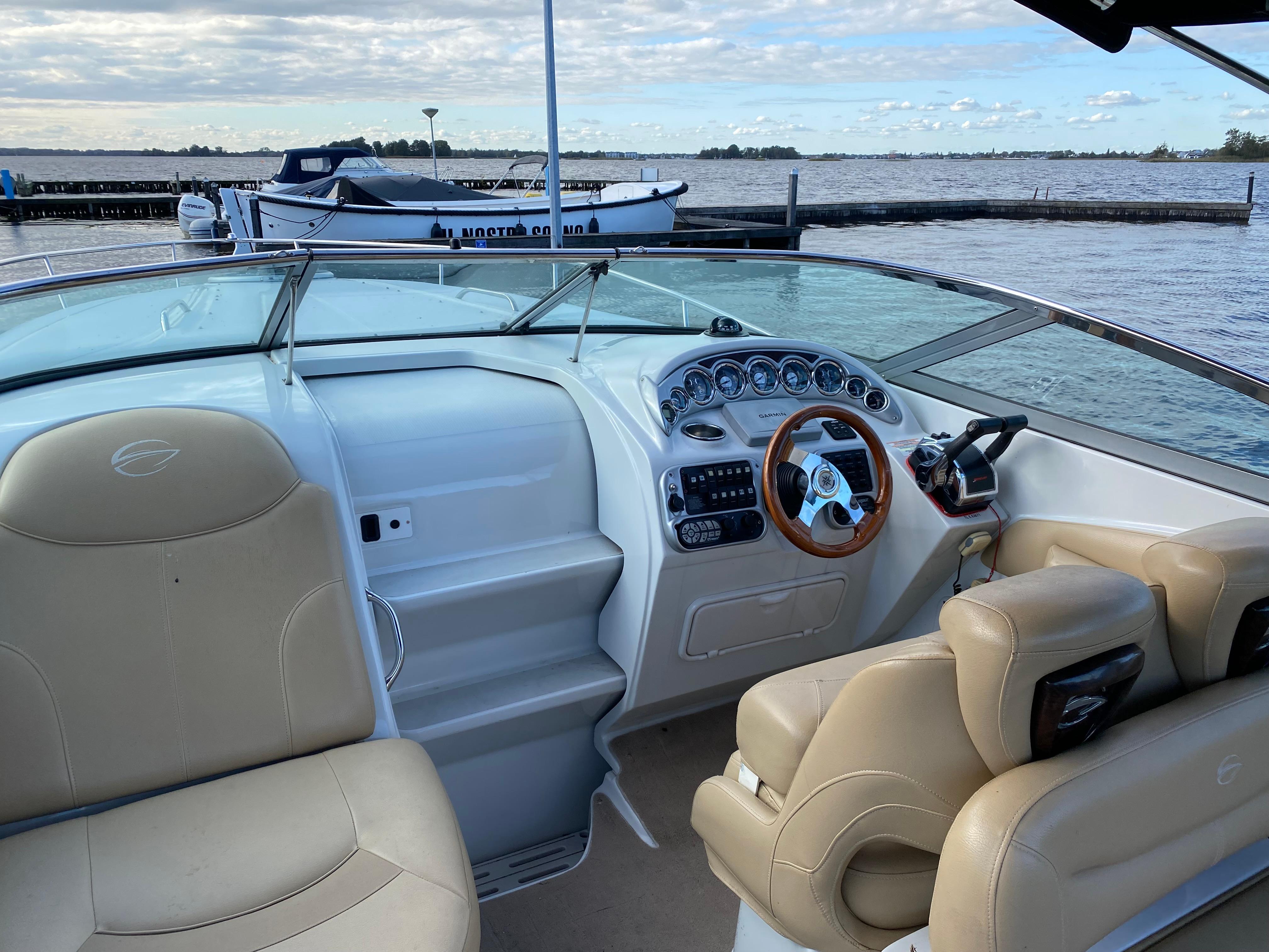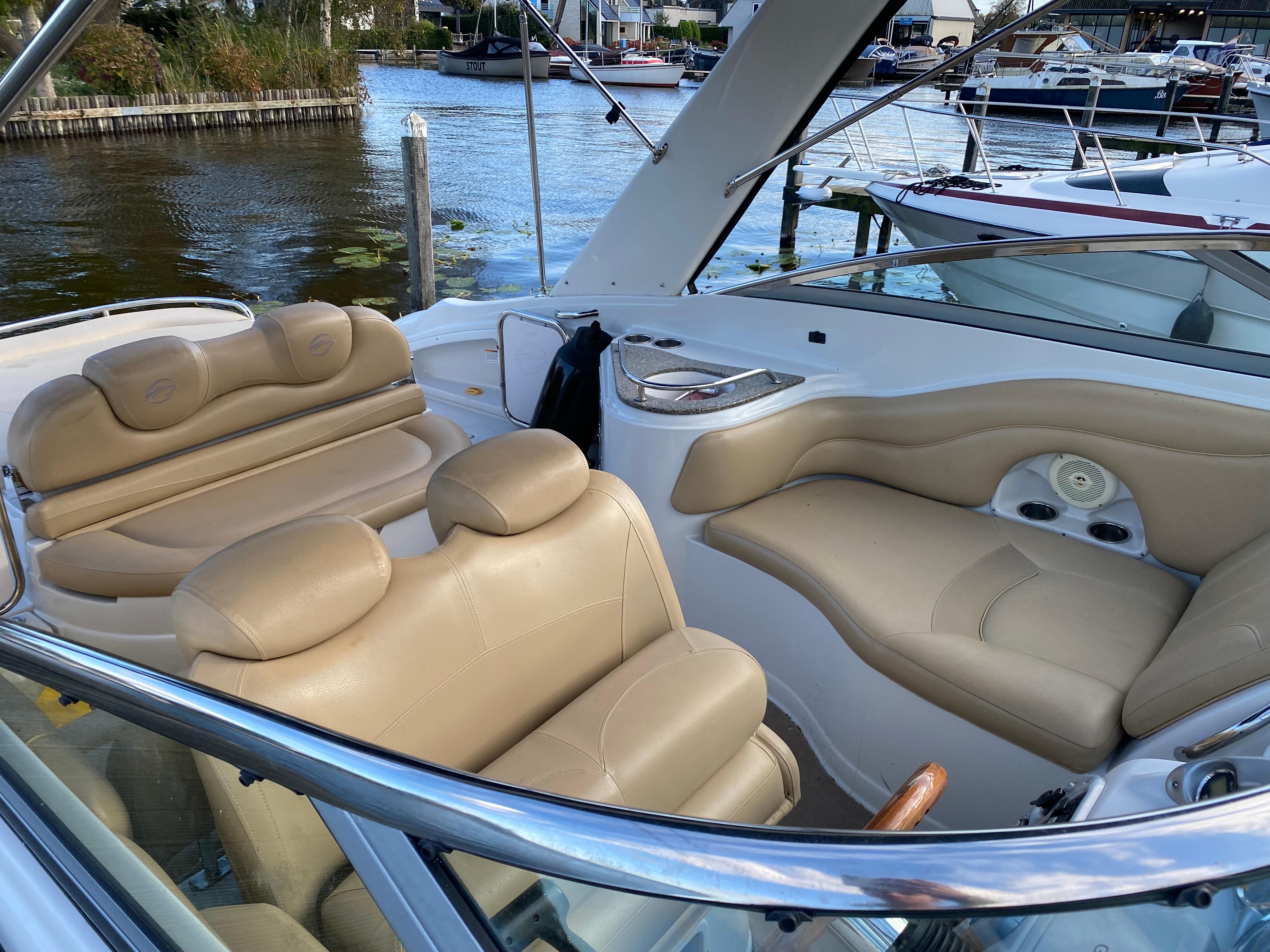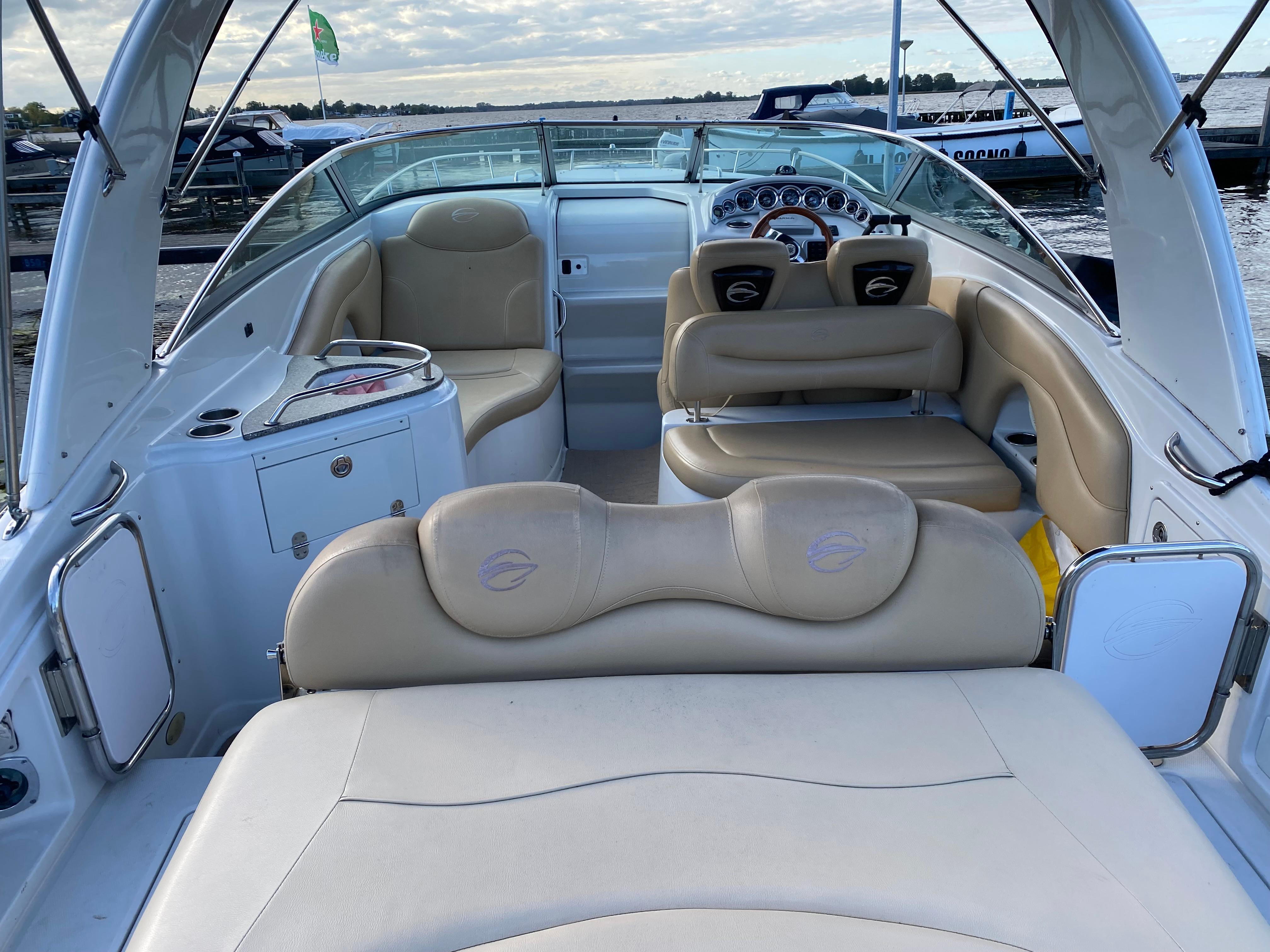 Crownline 325 SCR uit 2012 aangedreven door 2 Mercuiser 250 5.7L MAG 300 pk motoren met circa 425 motoruren.