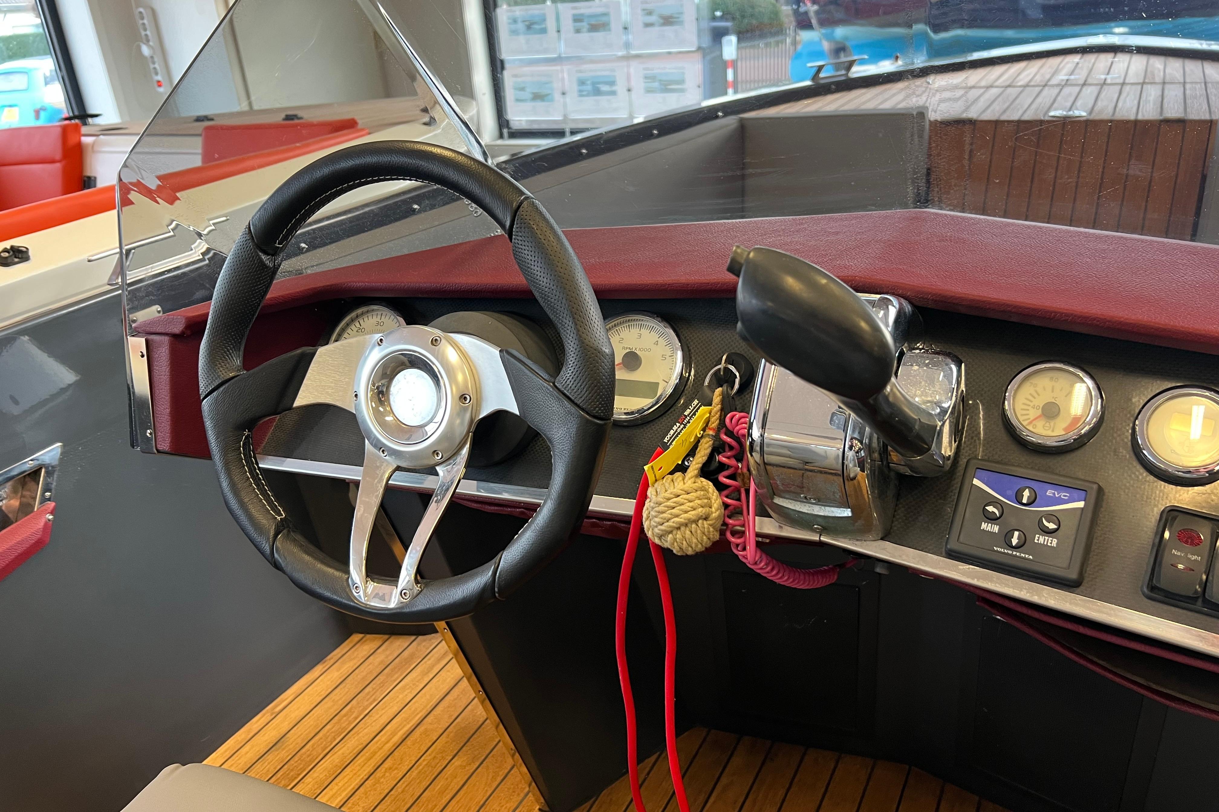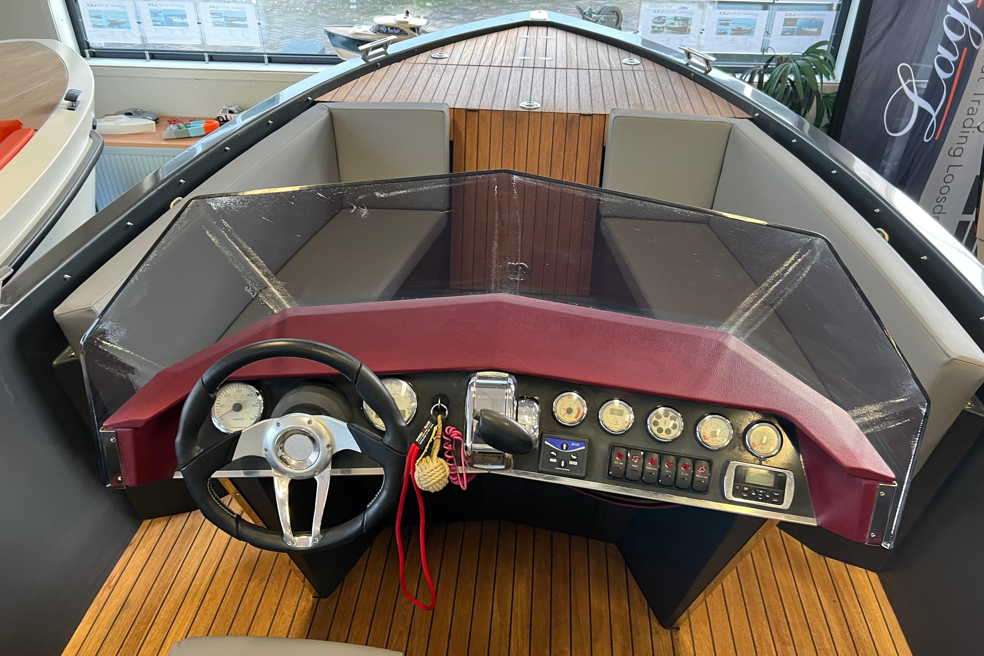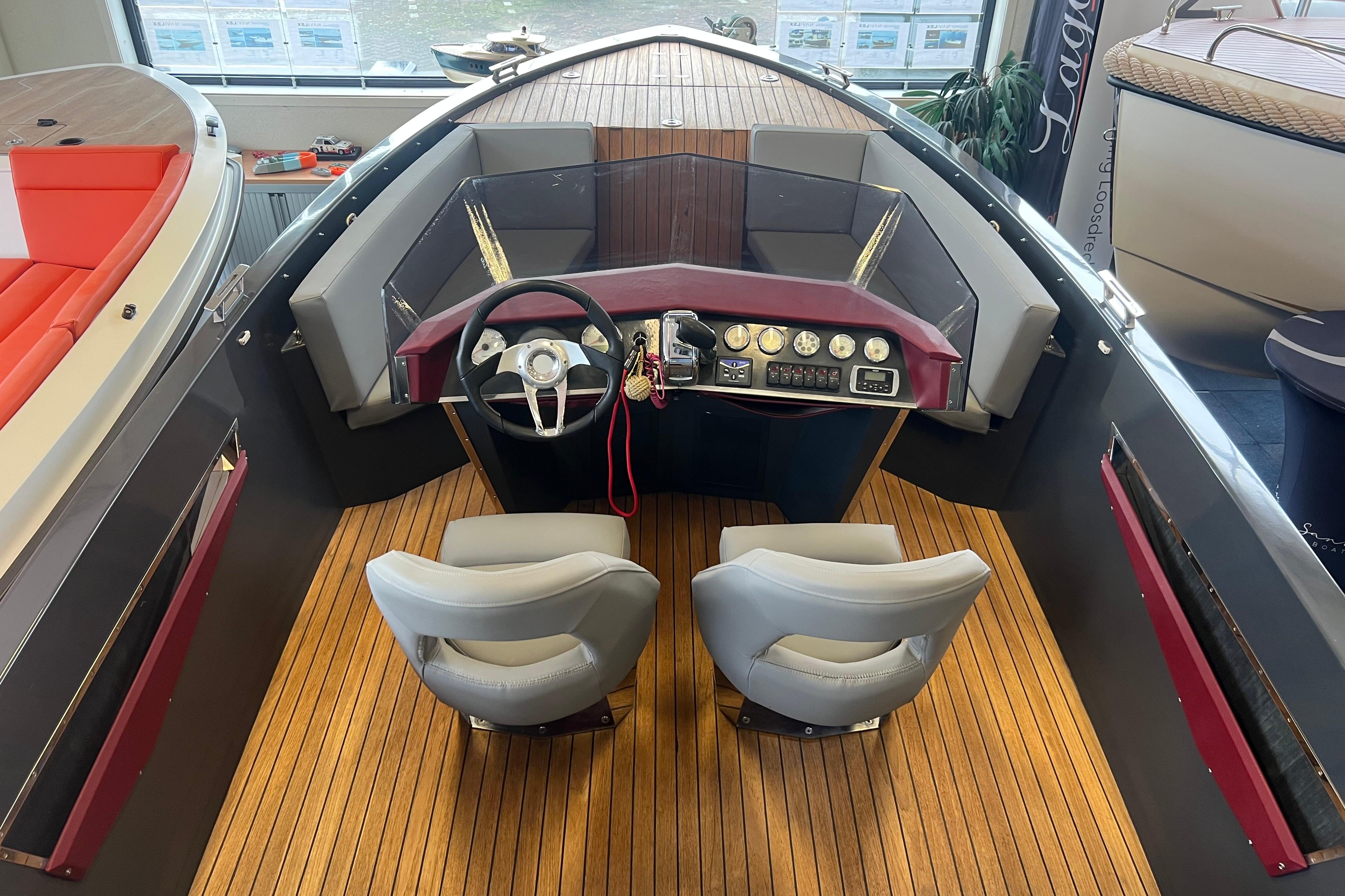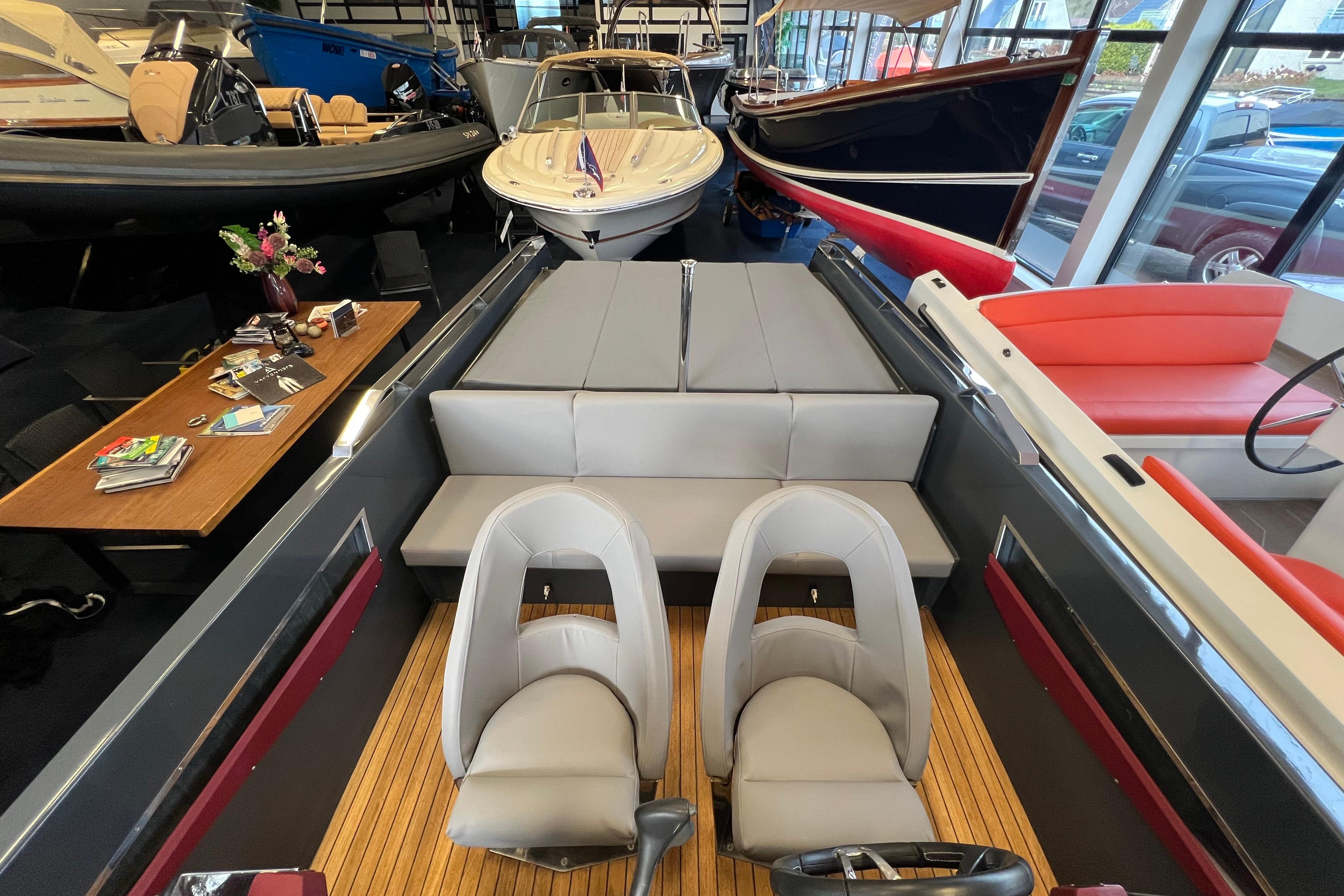 De Frauscher is voorzien van een complete kussenset, zonnedek, waterskipaal, zwemtrap, audioinstallatie met 4 speakers, 2 kuipstoelen, blower, bilgepomp, doucheinstallatie zowel binnen als buiten, kuiptafel, walstroom, anker, fenders en lijnen.