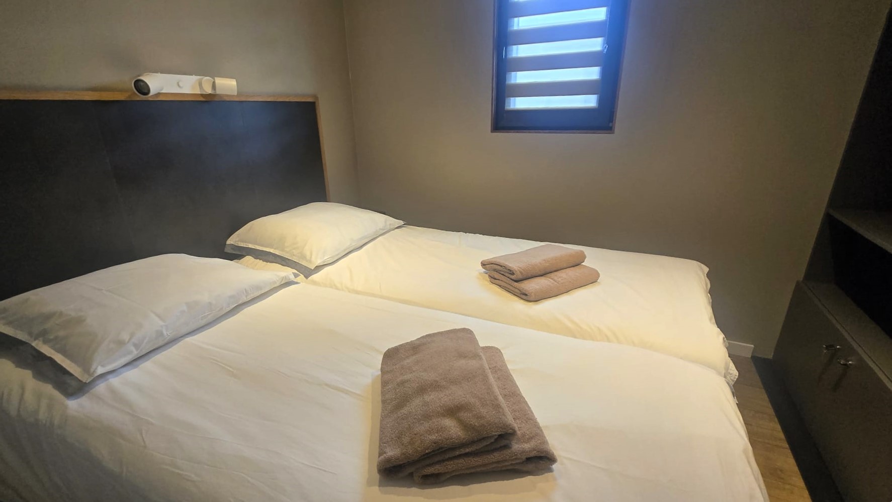 2 luxe twee persoonsslaapkamers met boxspring met mooie details en ruime kledingkasten.