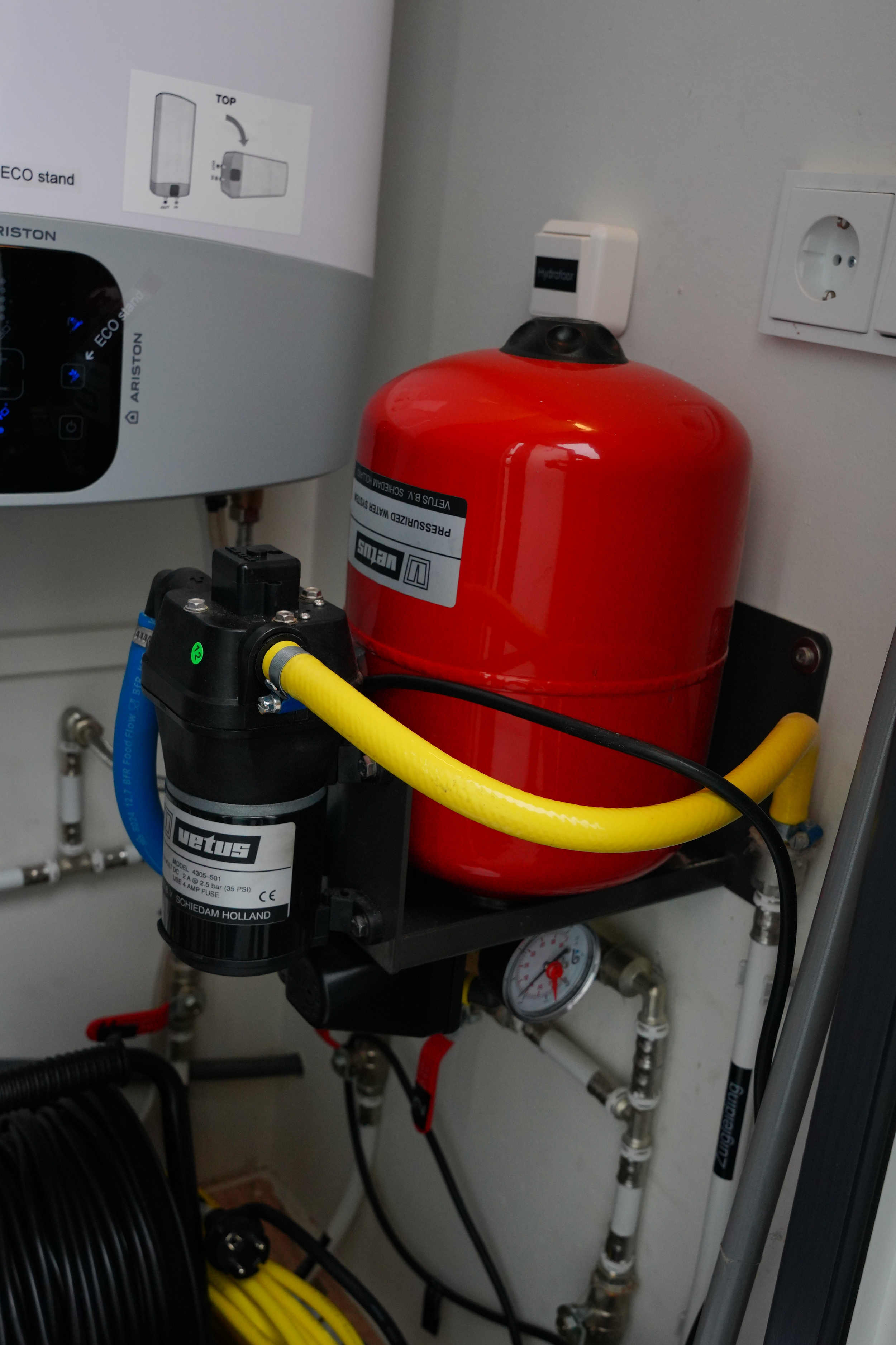 Drinkwater tank inclusief pomp, vuldop en meter. Inhoud 400 liter (echter boot zit nu op vaste wateraansluiting wal)