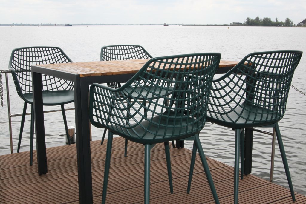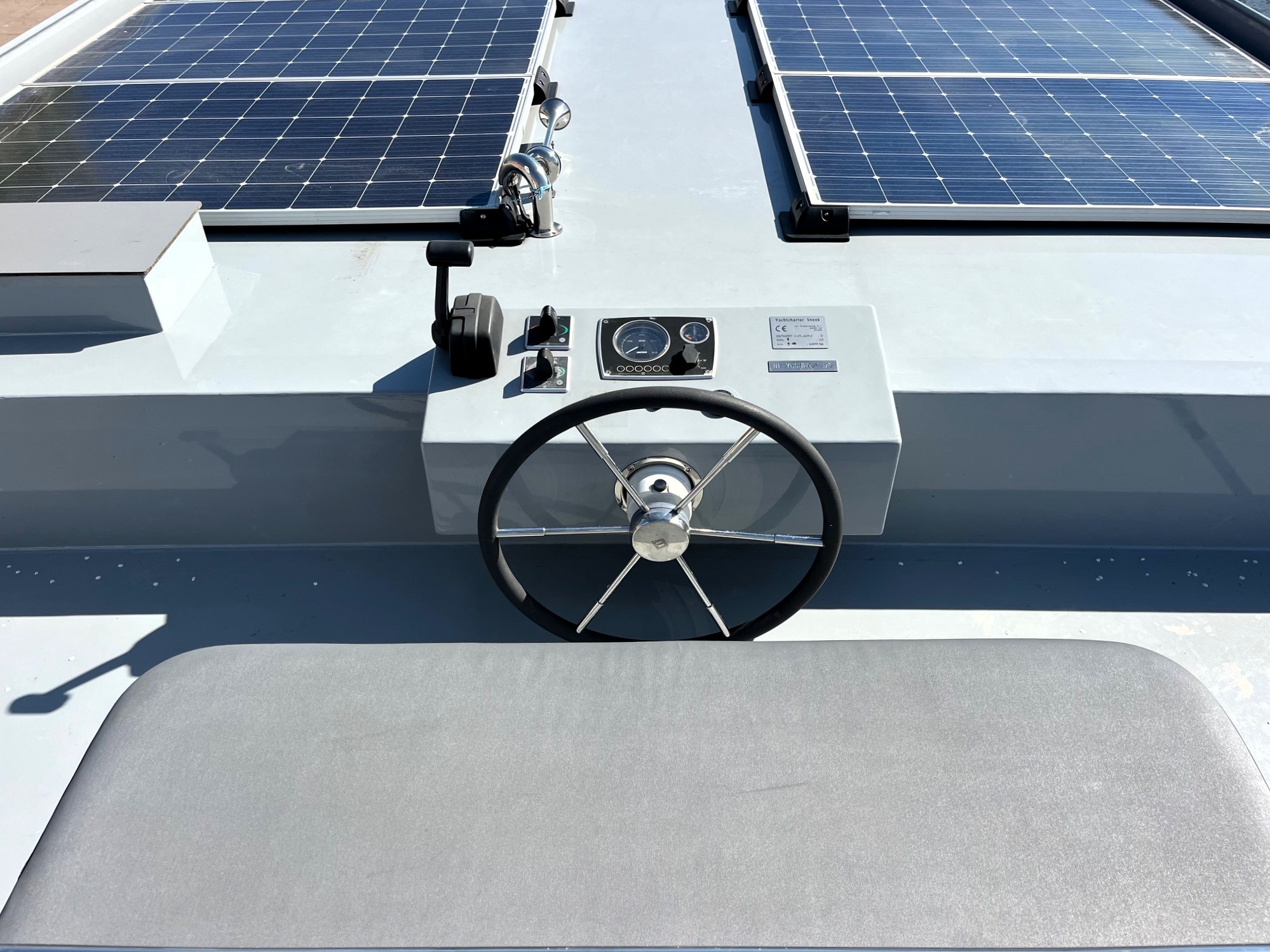 De indeling is zeer practisch en comfortabel en biedt ruimte aan 6 ( + 2) personen. De ruime opzet van de keuken en het woongedeelte zorgt voor veel levensruimte aan boord. Met een geriefelijke bank en een grote houten tafel met stoelen kan men heerlijk relaxed vertoeven met meerdere mensen tegelijk. Vanuit de living kunt u via een schuifpui het voorterras op.