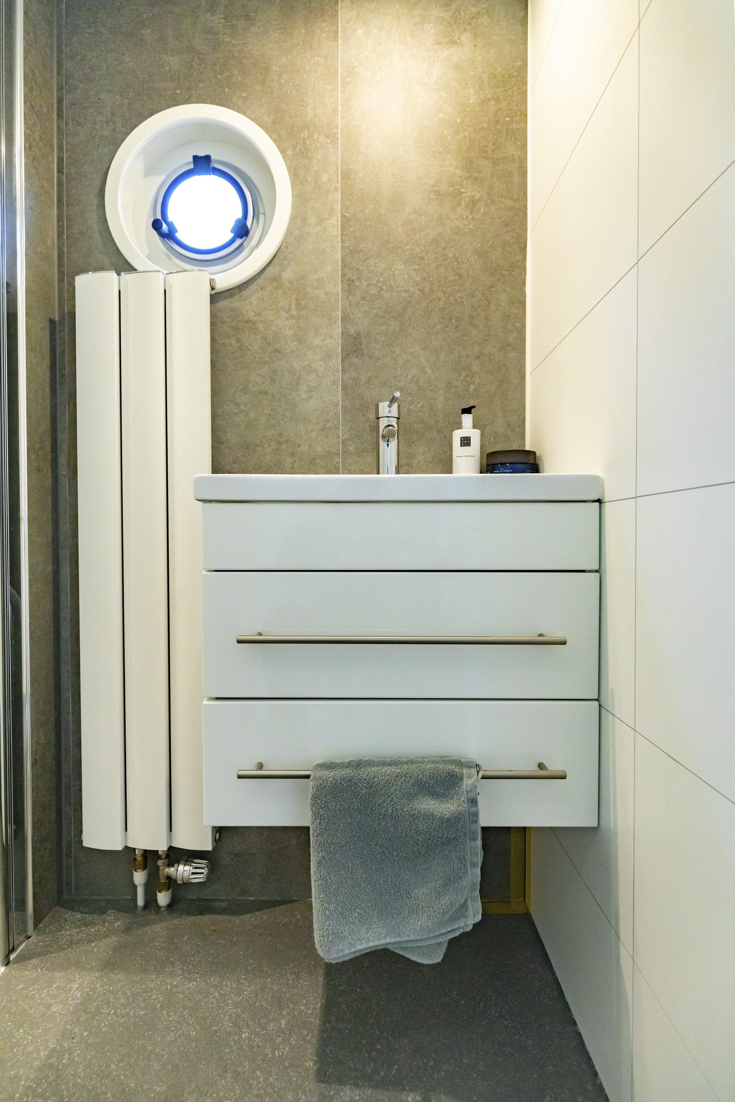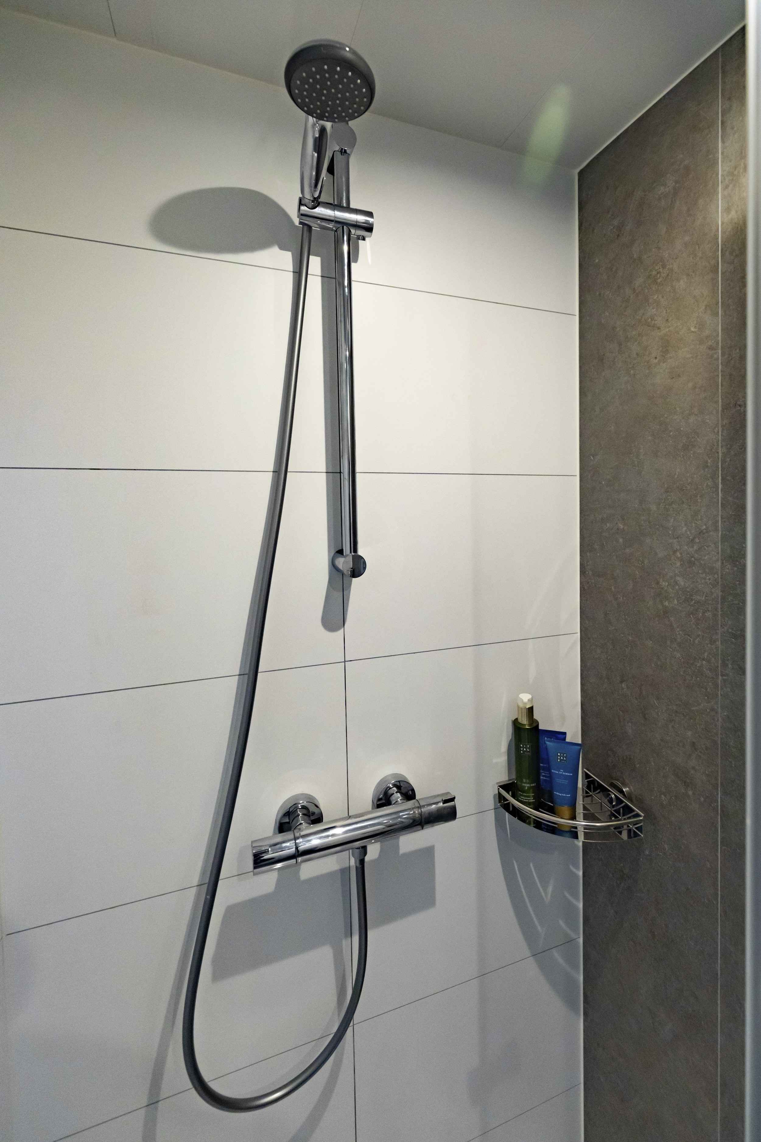 De douche en toiletruimte hebben kunststof watervaste vloeren. (kliksysteem)