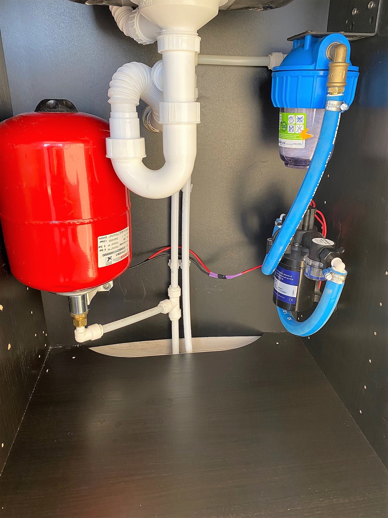 Warm tapwatersysteem met standaard 500W elektrische boiler onder het bed 60 liter.