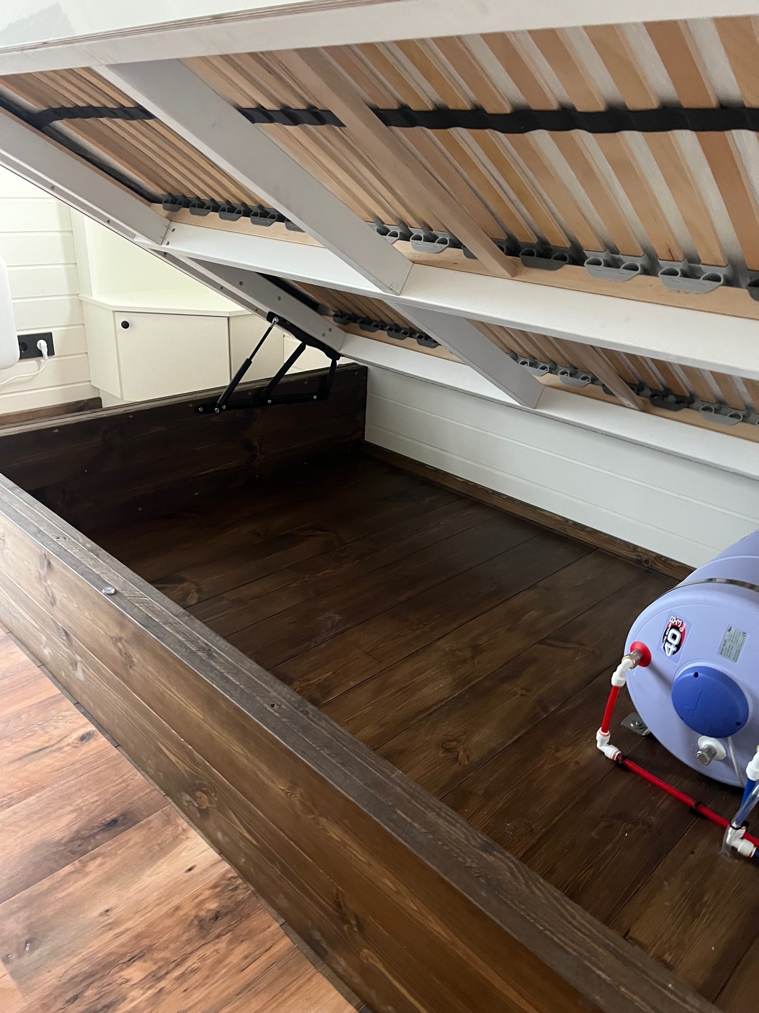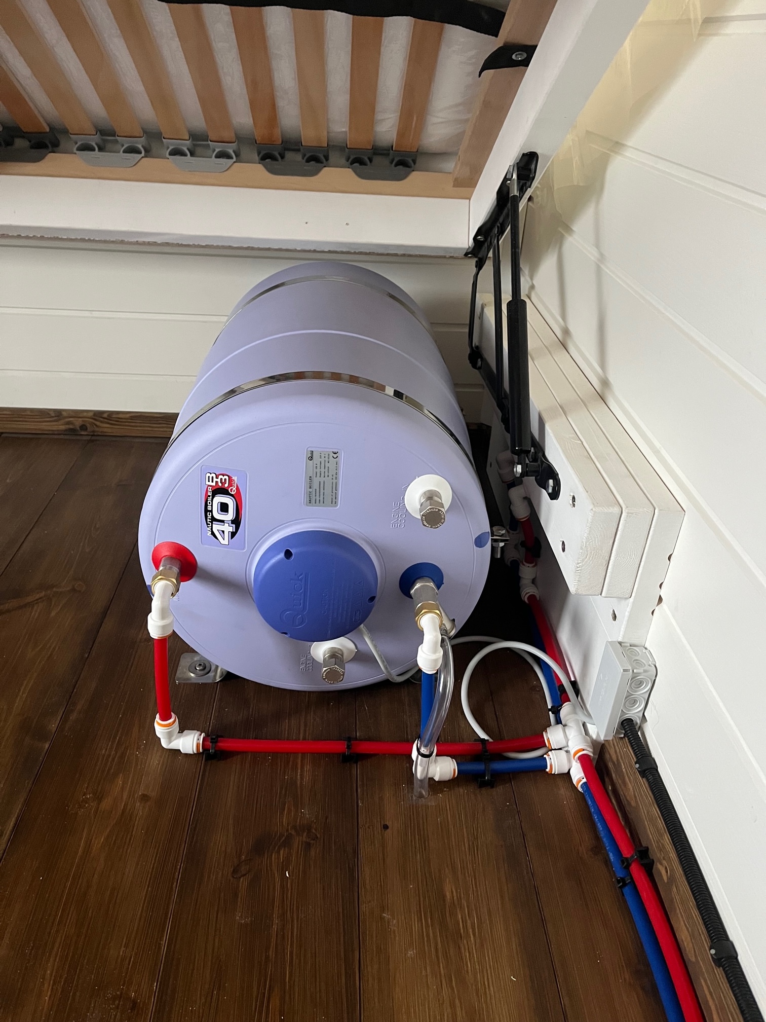 Warm tapwatersysteem met standaard 500W elektrische boiler onder het bed 40 liter.
