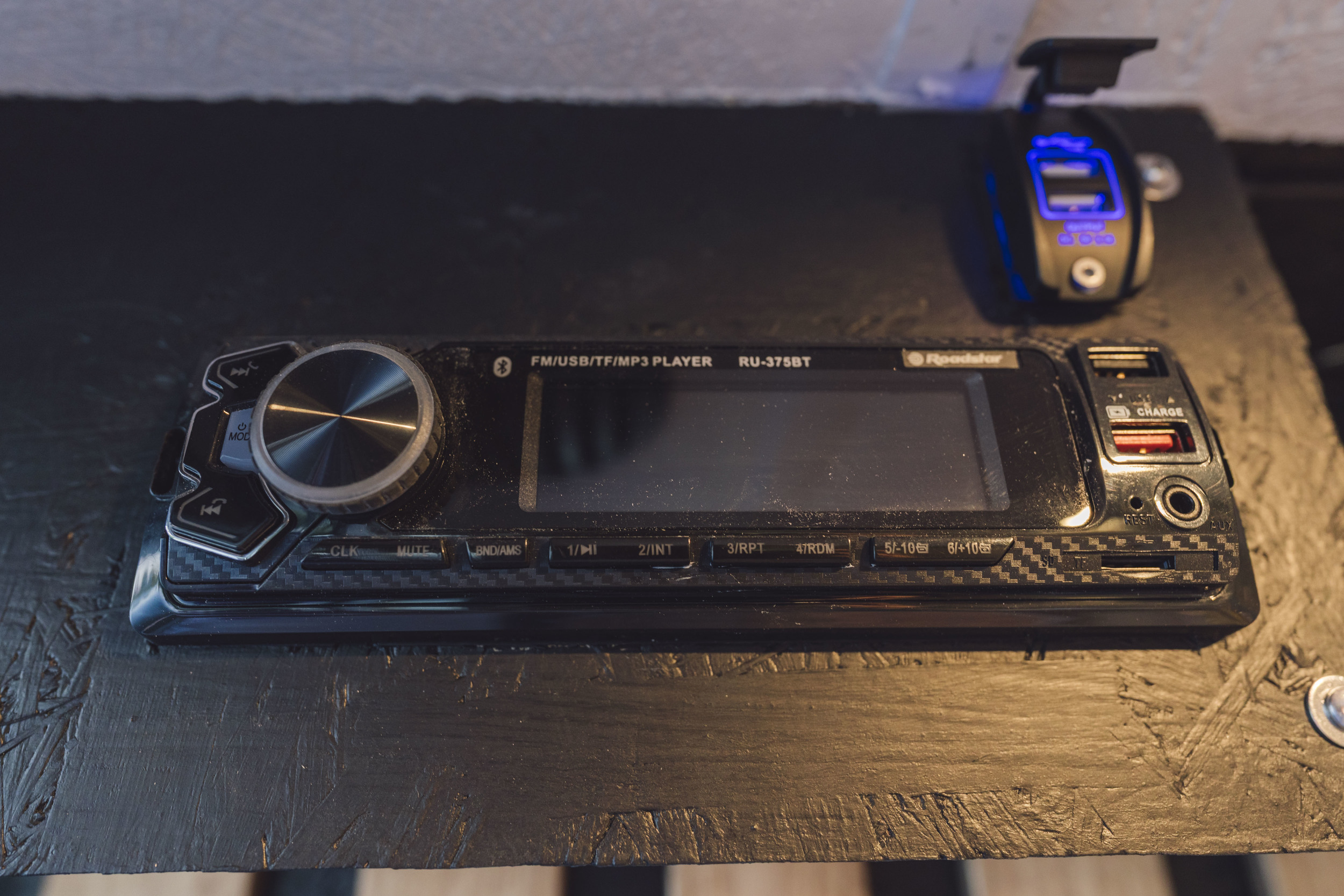 Usb stekker, radio met antenne en bluetooth en 4 speakers. 2x usb charge stekkers.