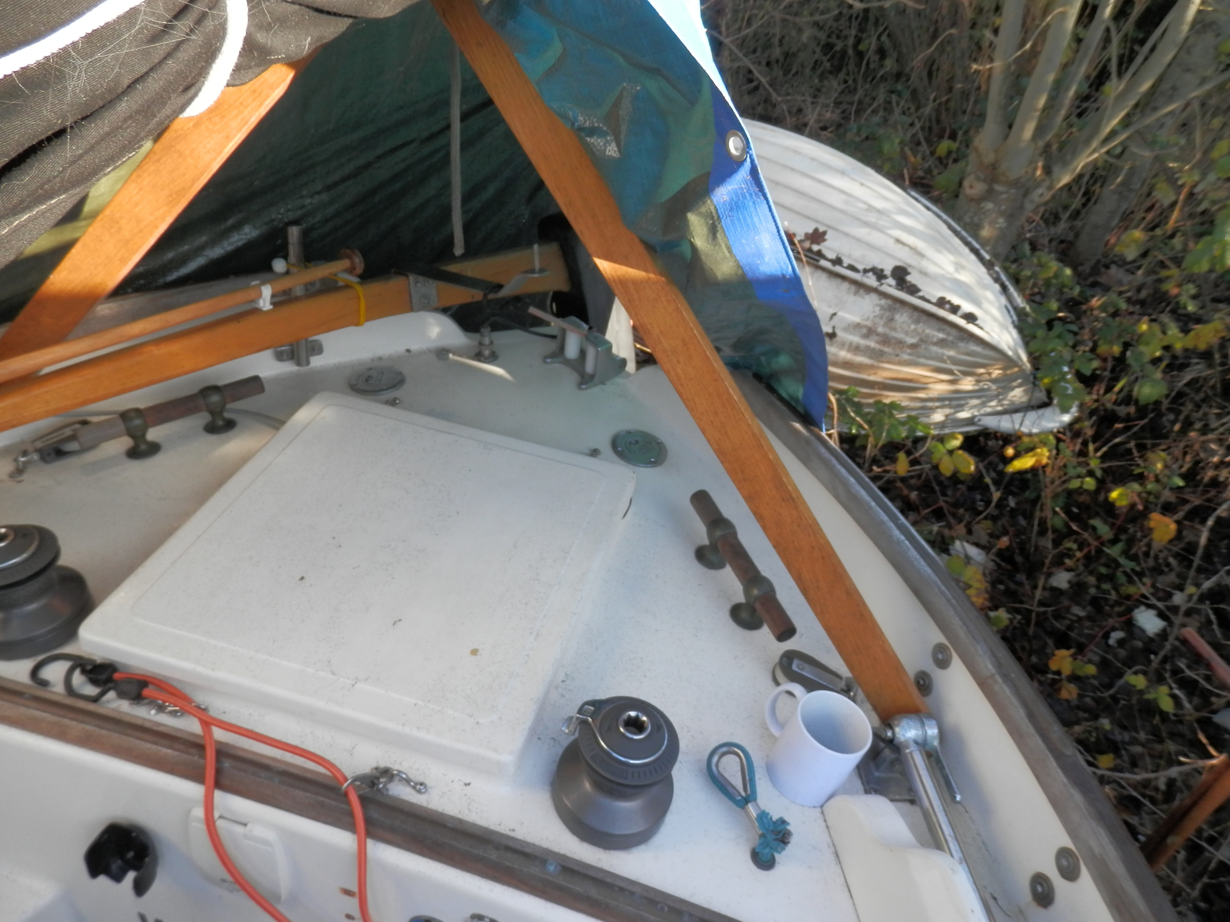 Er is een nog niet gebruikte (beige) sprayhood en een idem dektent.
