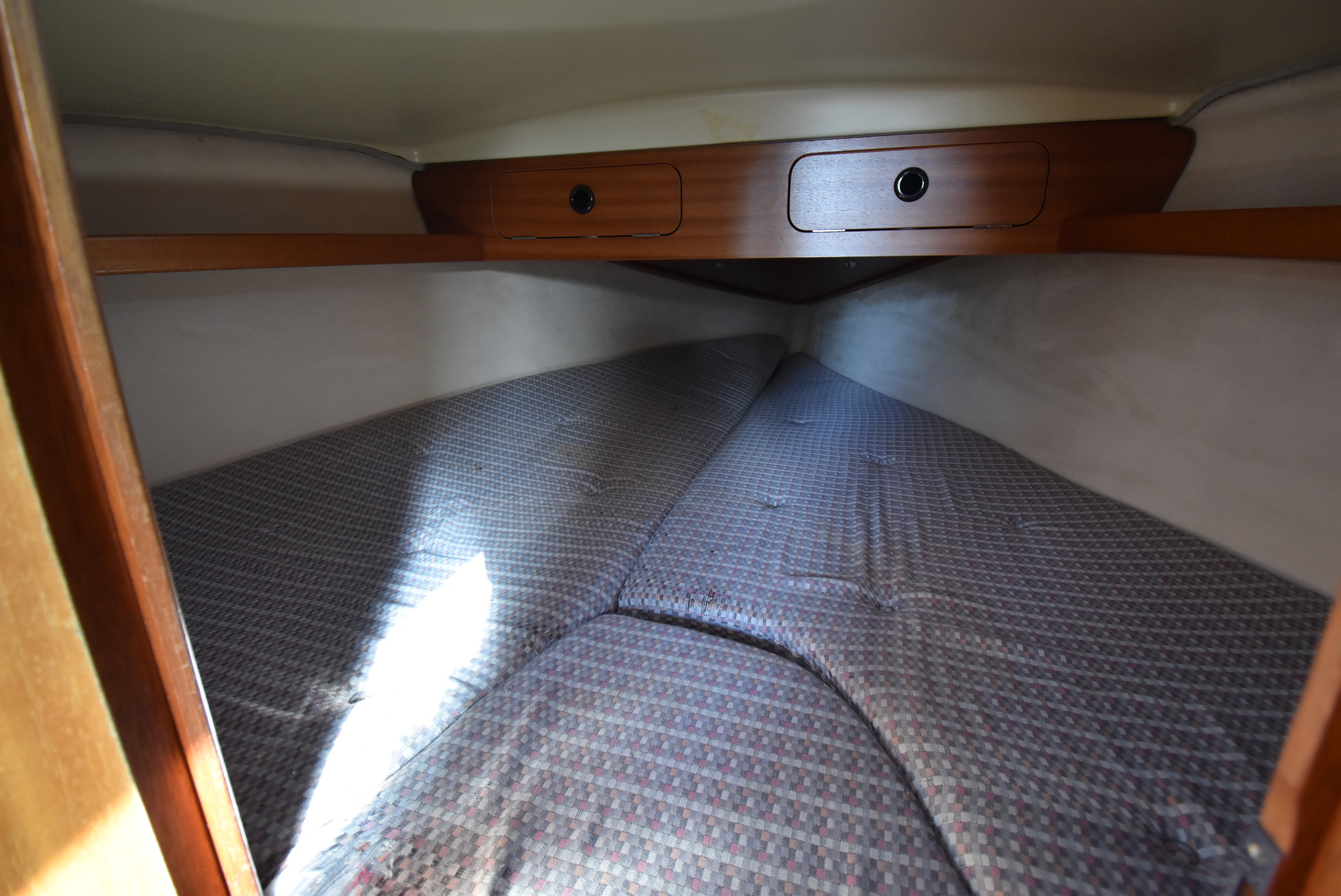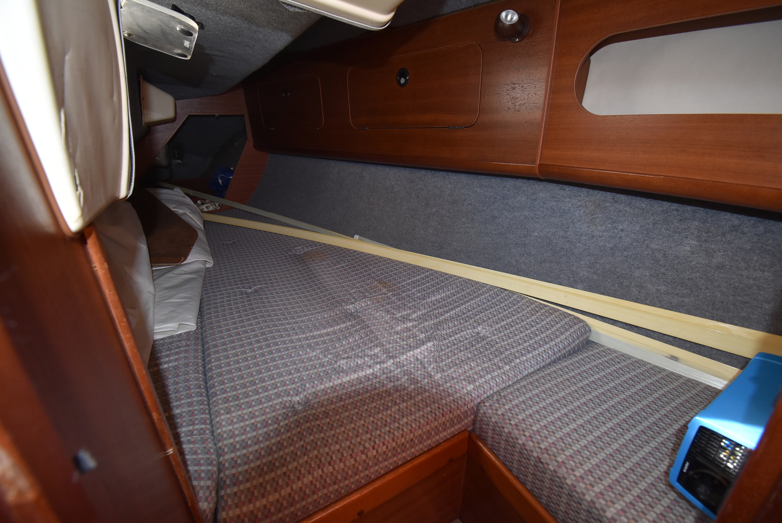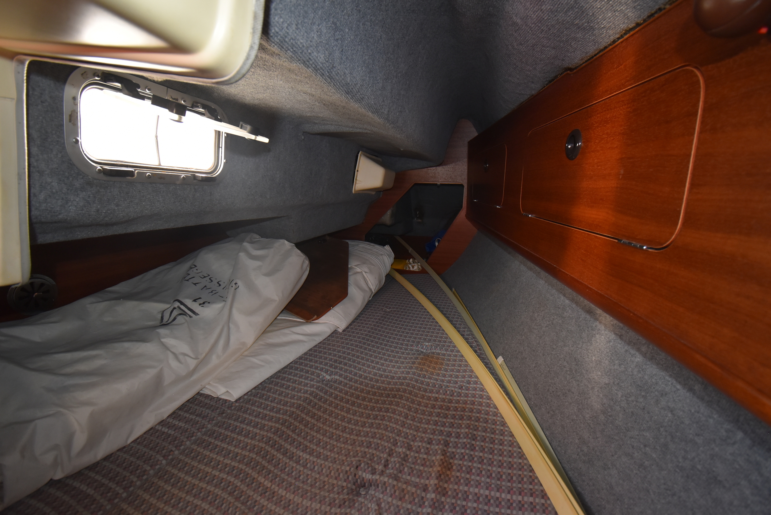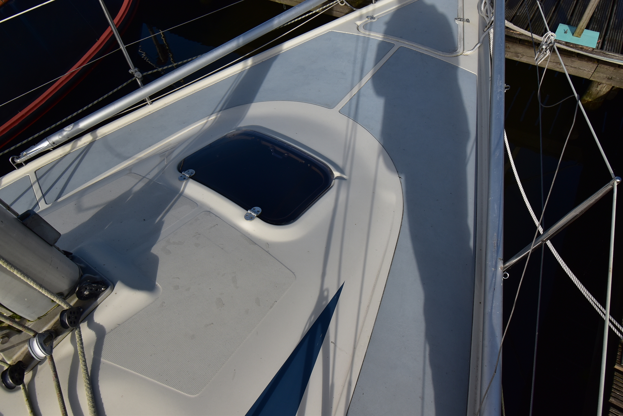 Het grootzeil is nog origineel, wij zeilen er goed mee, mankeert niets aan. De fok (rolgenua) is van november 2011, dus in 2012 voor het eerst mee gezeild. De fok is voorzien van foam in het voorlijk, zodat bij reven het model nog steeds goed blijft.