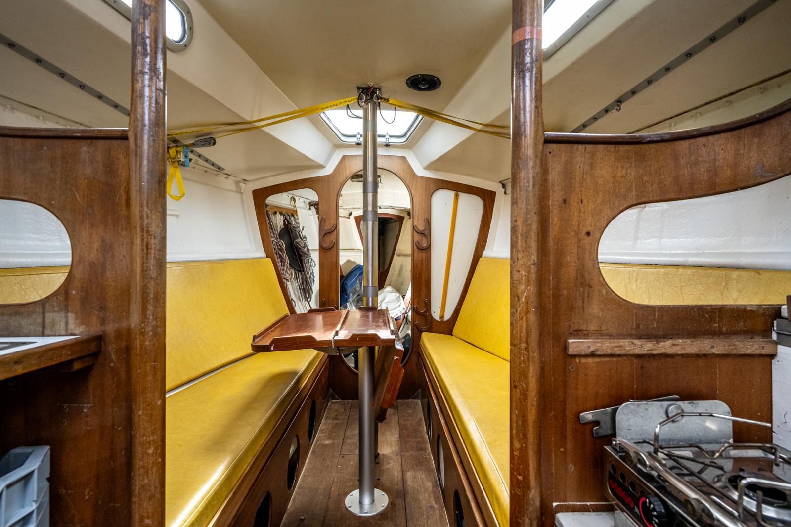 De Fly 34, ook Mosquito104 genoemd is een ranke Deense klassieker, gebouwd in 1980. Deze sportieve zeiler is ontworpen door het maritiem architectenbureau Elvstrøm & Kjaerulff. In de loop van de jaren is er veel verbeterd en vervangen, onder andere de voortstuwing met motor (Volvo Penta MD2020) en zeilen (grootzeil en fok Hagoort Sails). De tuigage met hoge mast, smalle rompvorm en diepe kiel betekent snel en hoog aan de wind zeilen. Het interieur is eenvoudig maar karakteristiek, met 4 langsbanken en stahoogte. Een paar aandachtspuntjes: het toplicht moet nagekeken worden. Er zit een nieuwe lamp in, maar werkt niet goed. ook de mast en de vallen dienen aandacht en de huik is aan vervanging toe.