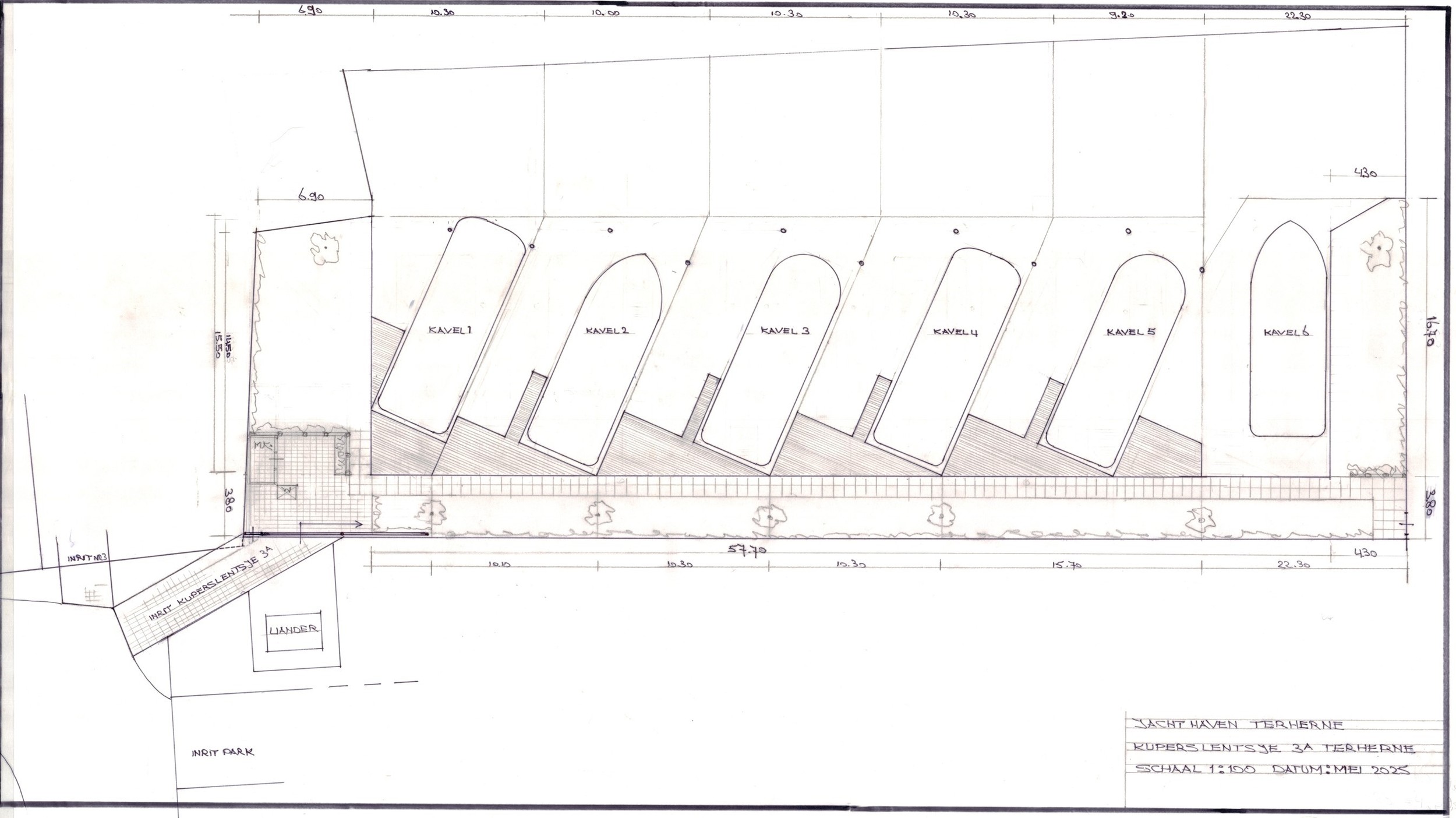 De visual die u hier ziet geeft een beeld van hoe de ligplaatsen ongeveer gaan worden. Exacte gegevens en de maatvoering van de kavels volgt spoedig.