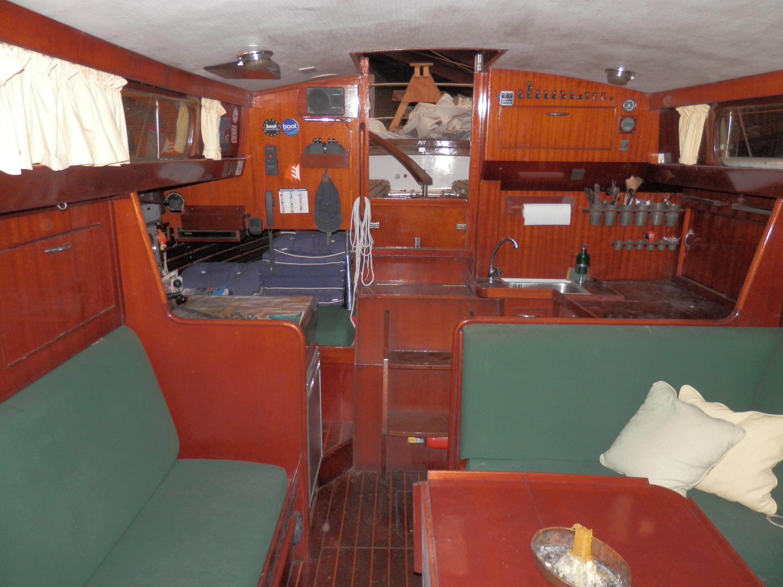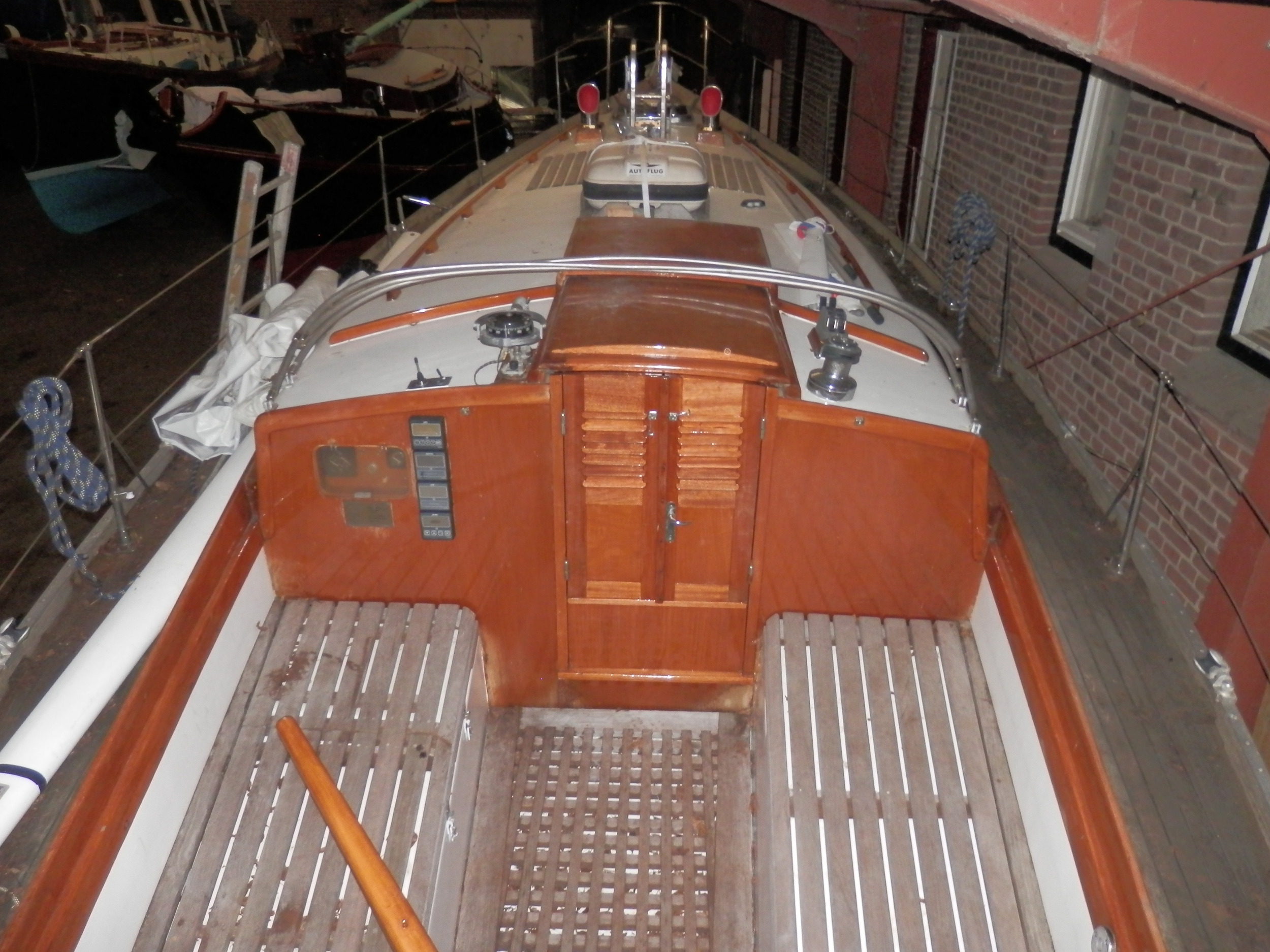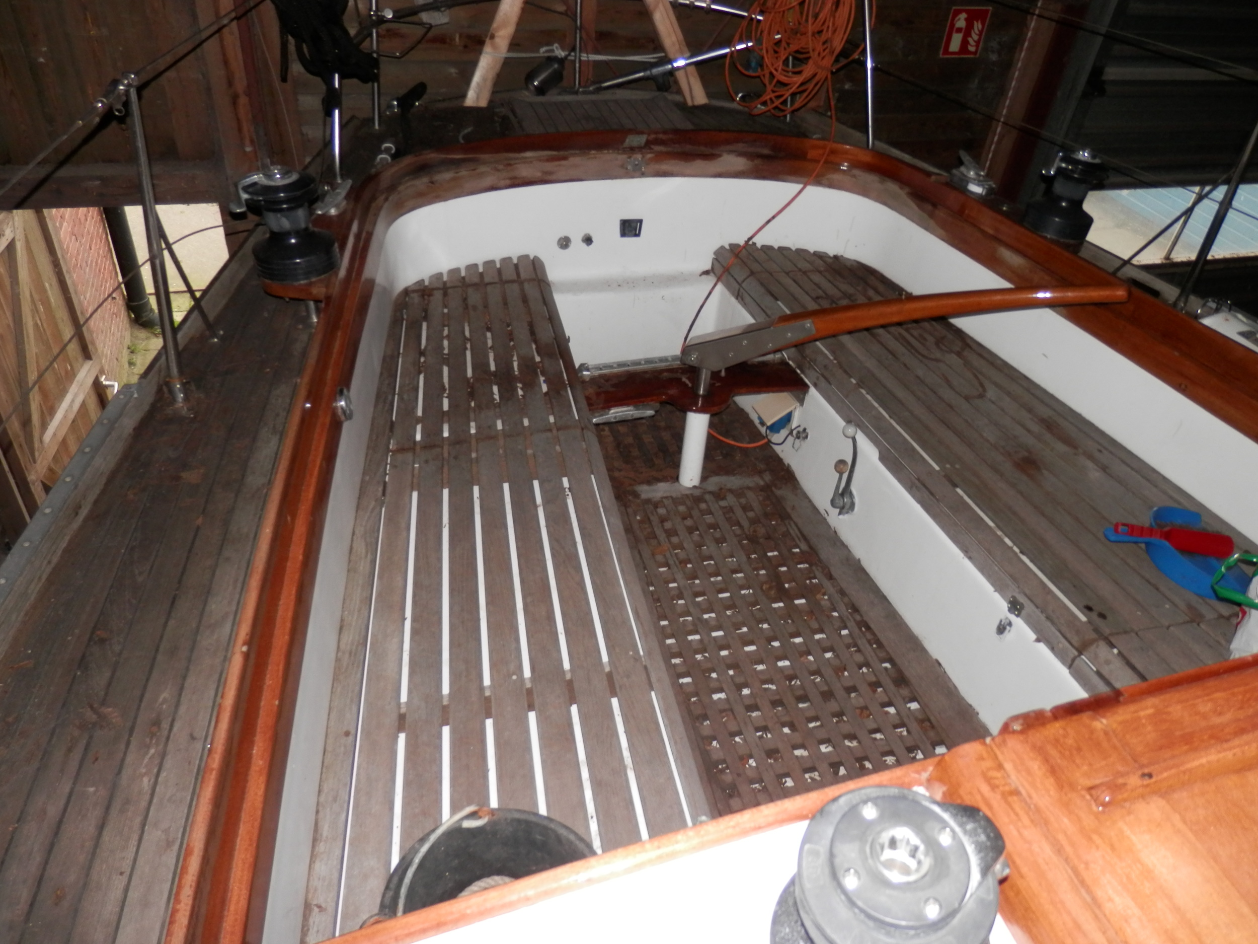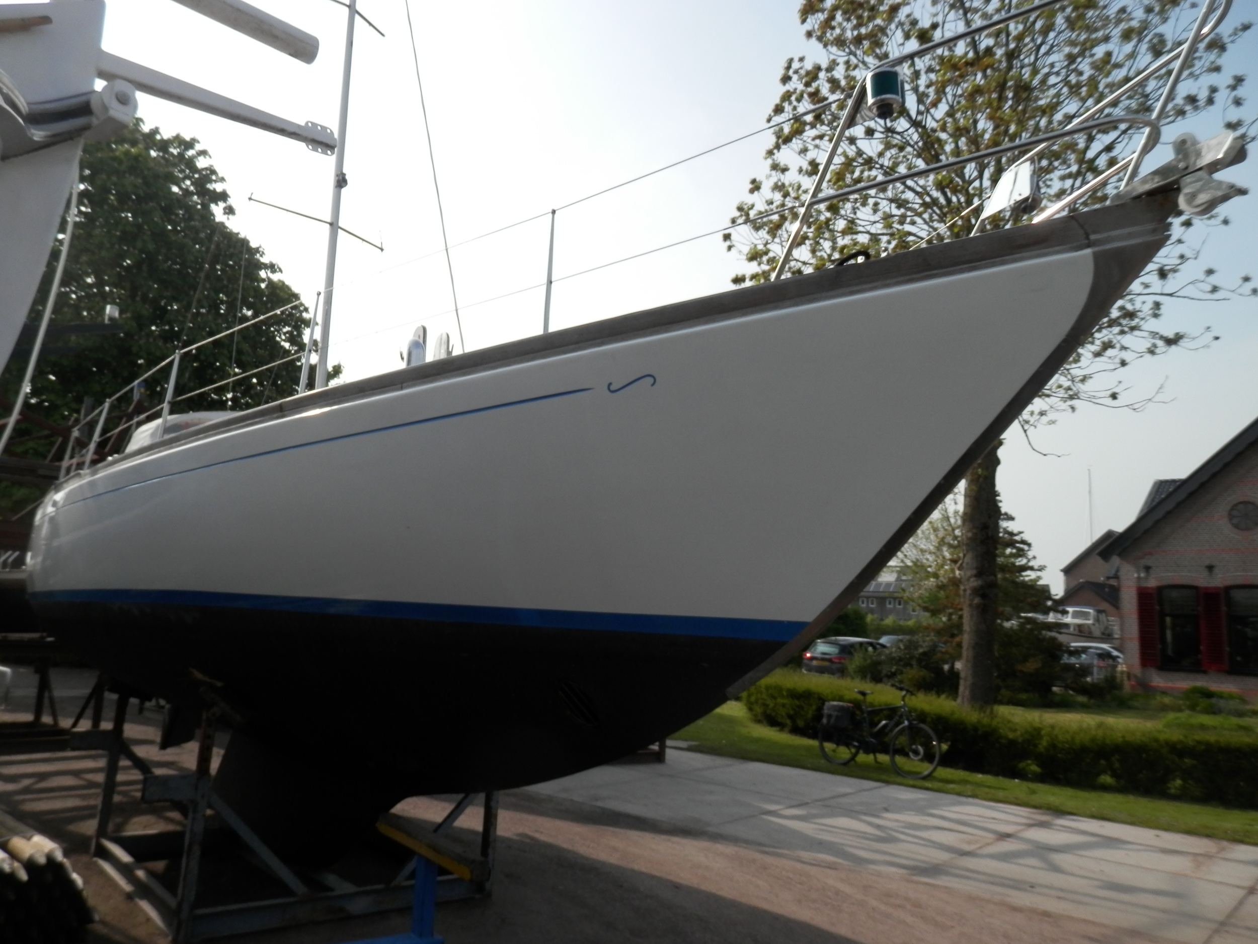 Een polyklassieker uit de 70-er jaren. Oerdegelijk gebouwd en met voortreffelijke zeileigenschappen. Het schip heeft enig technisch en cosmetisch achterstallig onderhoud. 1. In de voorplecht is de verankering van het dek met de steven (ingelamineerd staal) verrot (zie laatste foto). Om dit te repareren moet het voorschot van het vooronder en gedeeltelijk de bedden worden gedemonteerd. 2. Het teakdek ligt gedeeltelijk los en is slecht. 3. De randen van de kajuit zijn van binnen en buiten plaatselijk zacht. Mooi zeilplan met rolfok- en rolzeil (1992) van goede kwaliteit. Voor informatie en bezichtiging: 0031-6-10359729.
