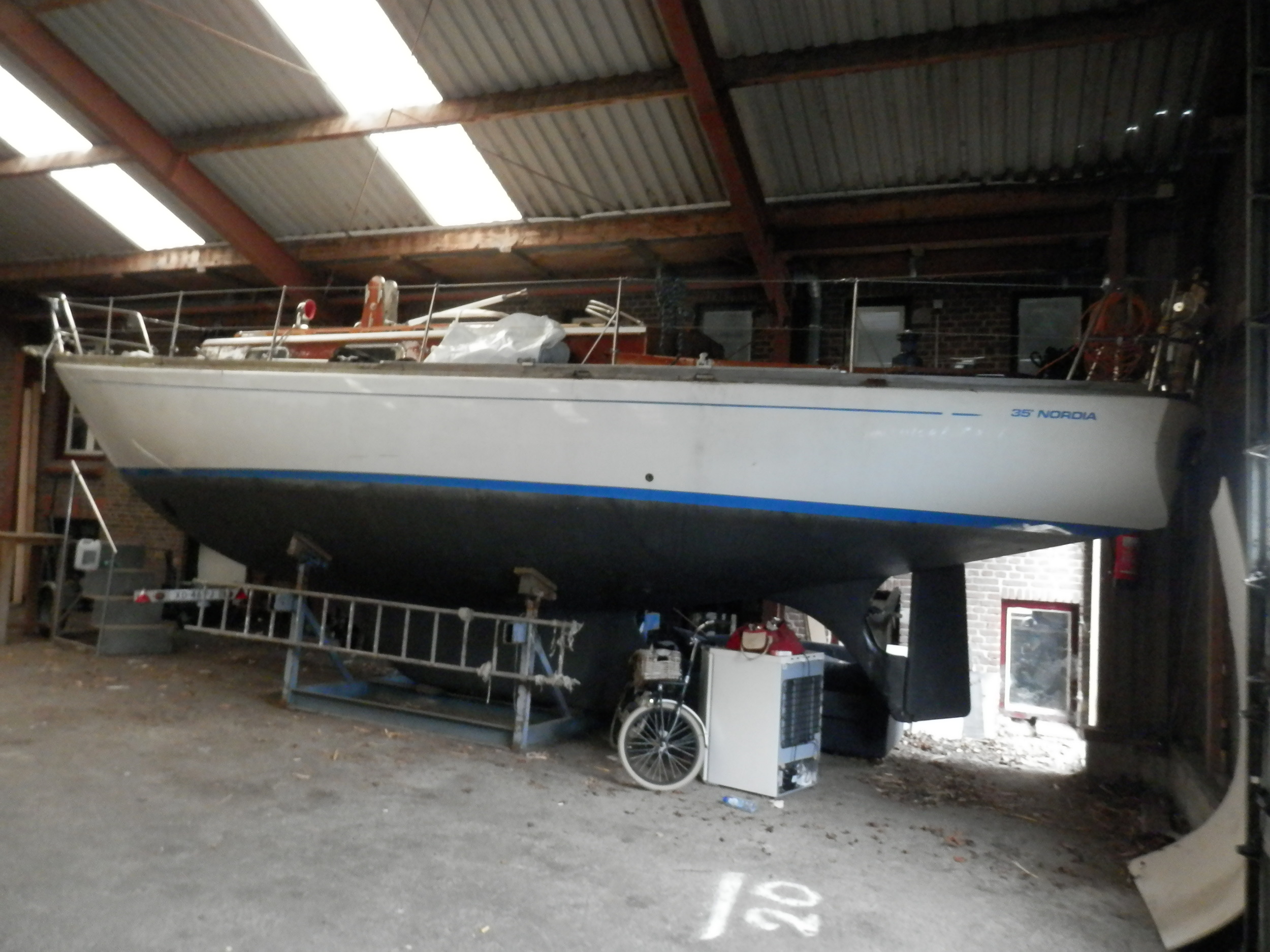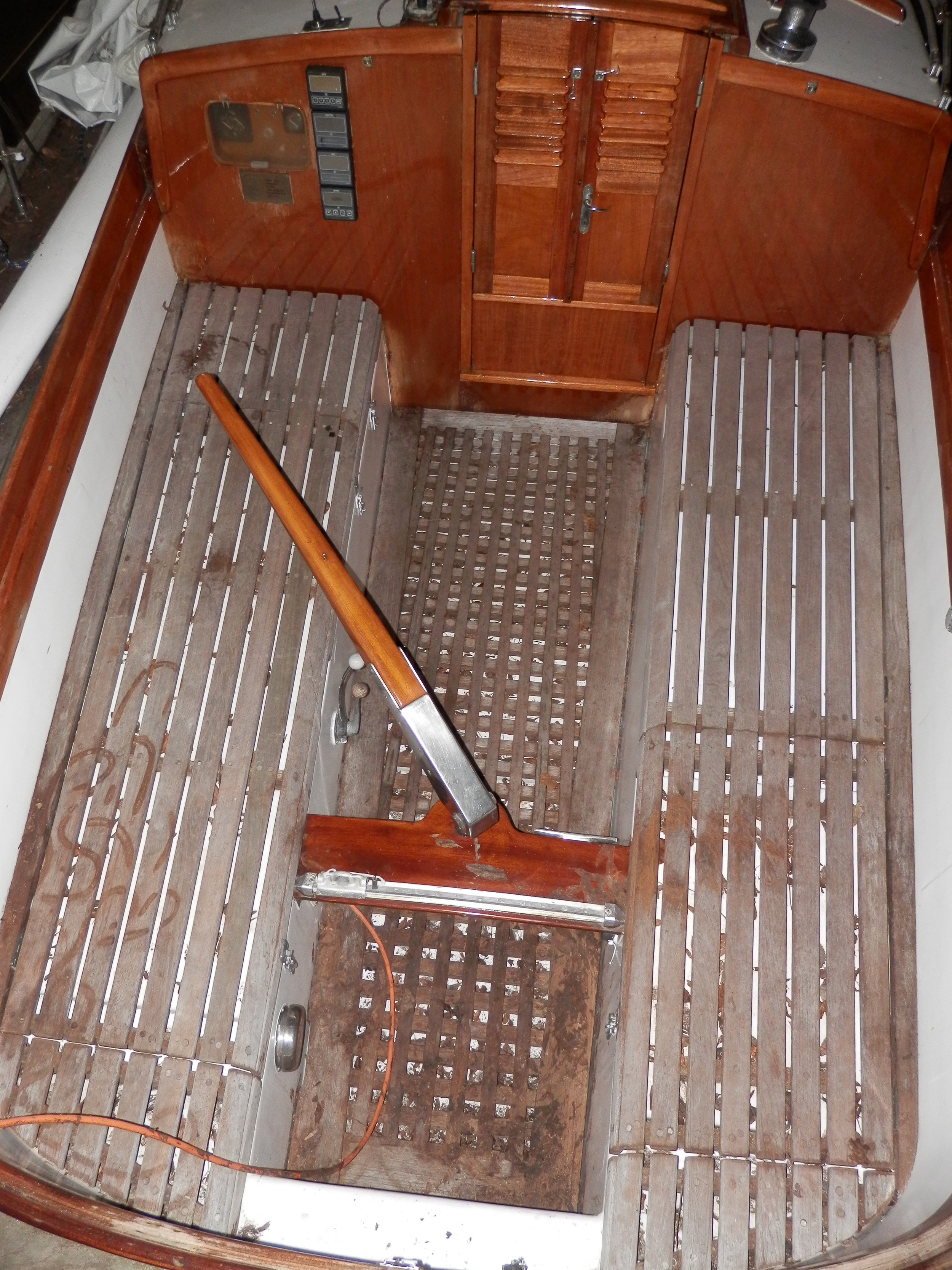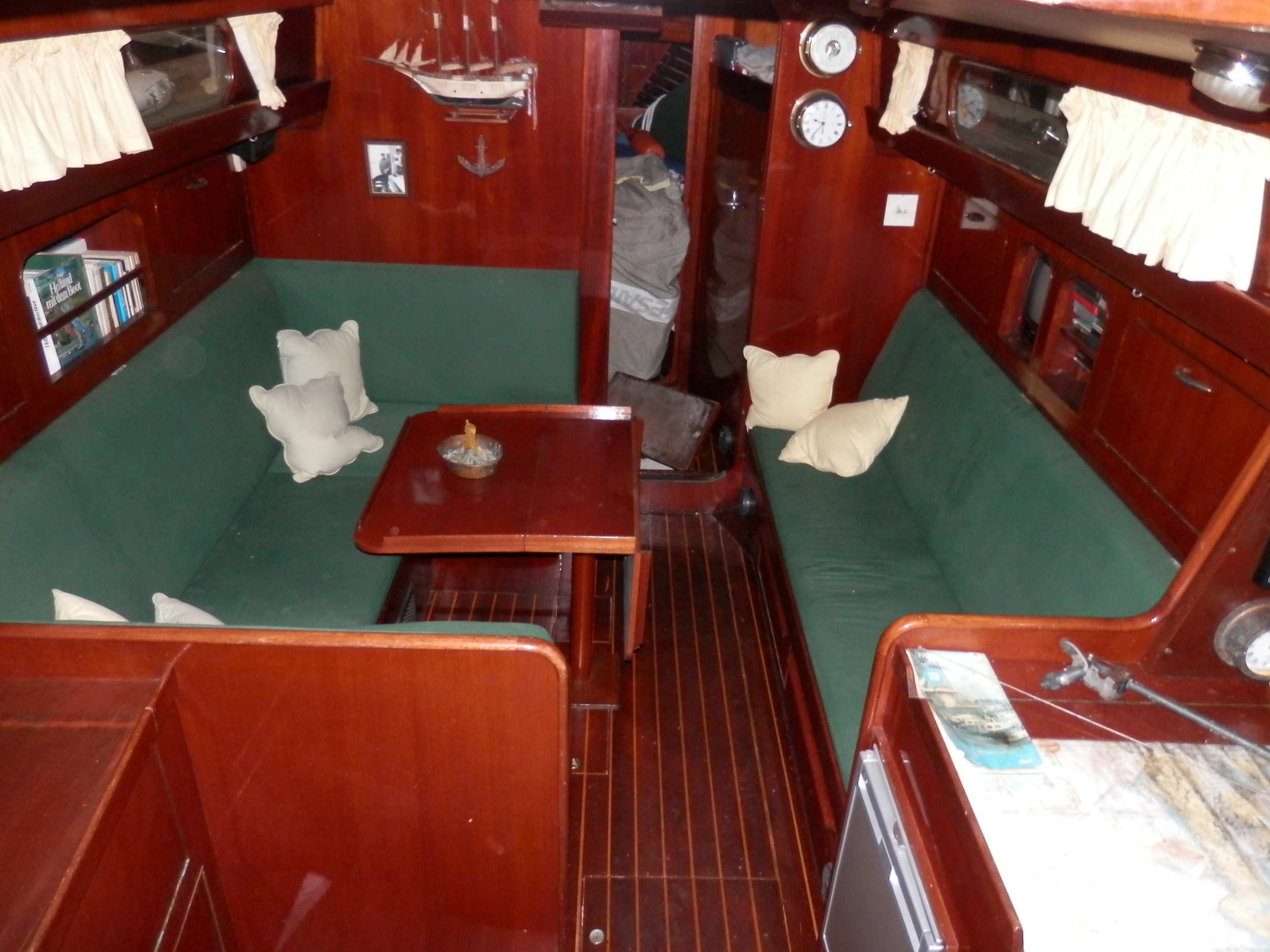 Een polyklassieker uit de 70-er jaren. Oerdegelijk gebouwd en met voortreffelijke zeileigenschappen. Het schip heeft enig technisch en cosmetisch achterstallig onderhoud. 1. In de voorplecht is de verankering van het dek met de steven (ingelamineerd staal) verrot (zie laatste foto). Om dit te repareren moet het voorschot van het vooronder en gedeeltelijk de bedden worden gedemonteerd. 2. Het teakdek ligt gedeeltelijk los en is slecht. 3. De randen van de kajuit zijn van binnen en buiten plaatselijk zacht. Mooi zeilplan met rolfok- en rolzeil (1992) van goede kwaliteit. Voor informatie en bezichtiging: 0031-6-10359729.