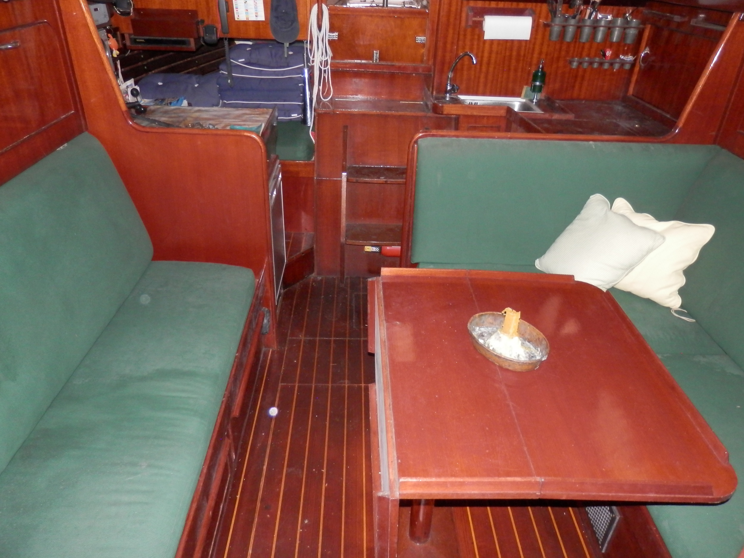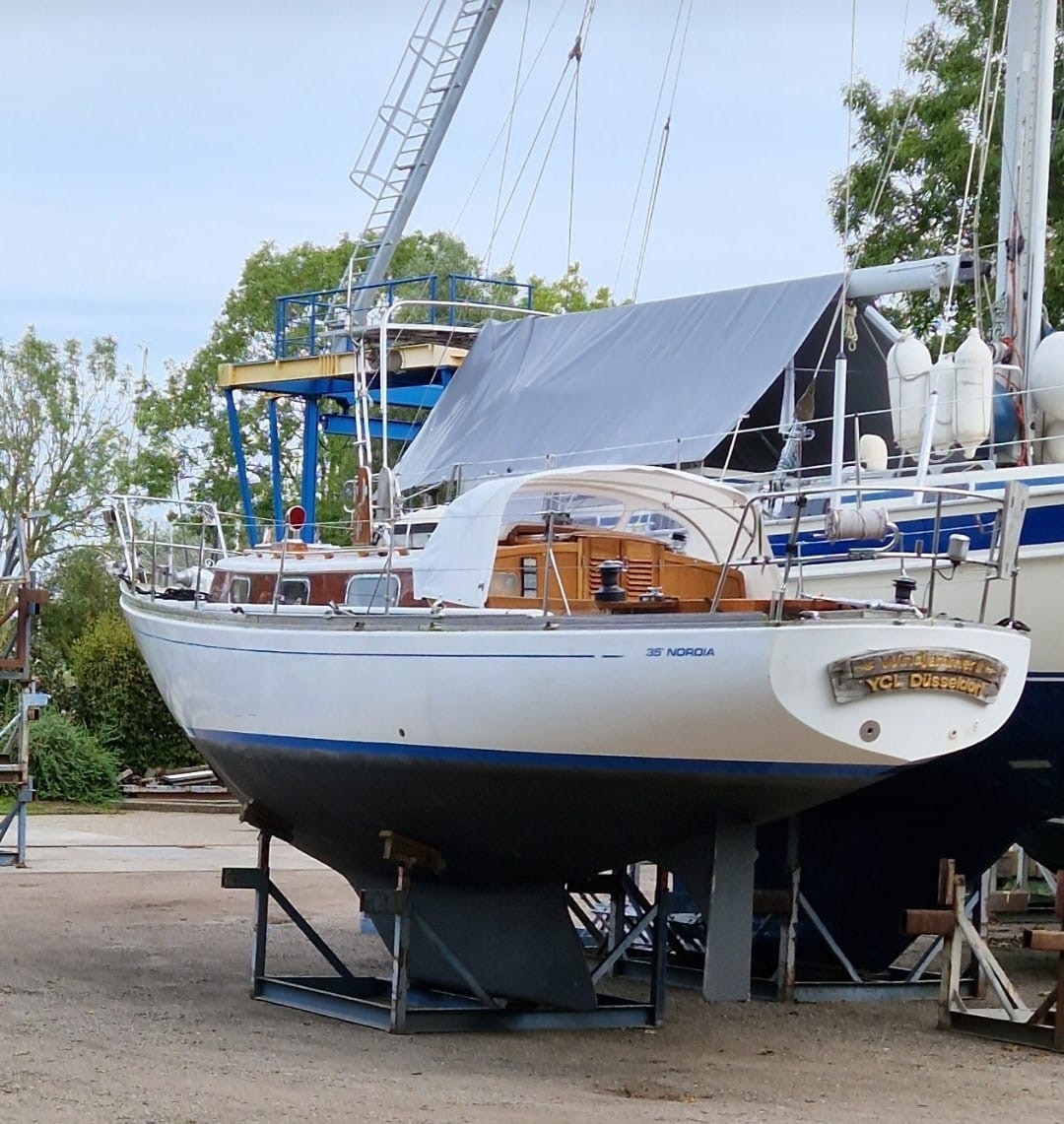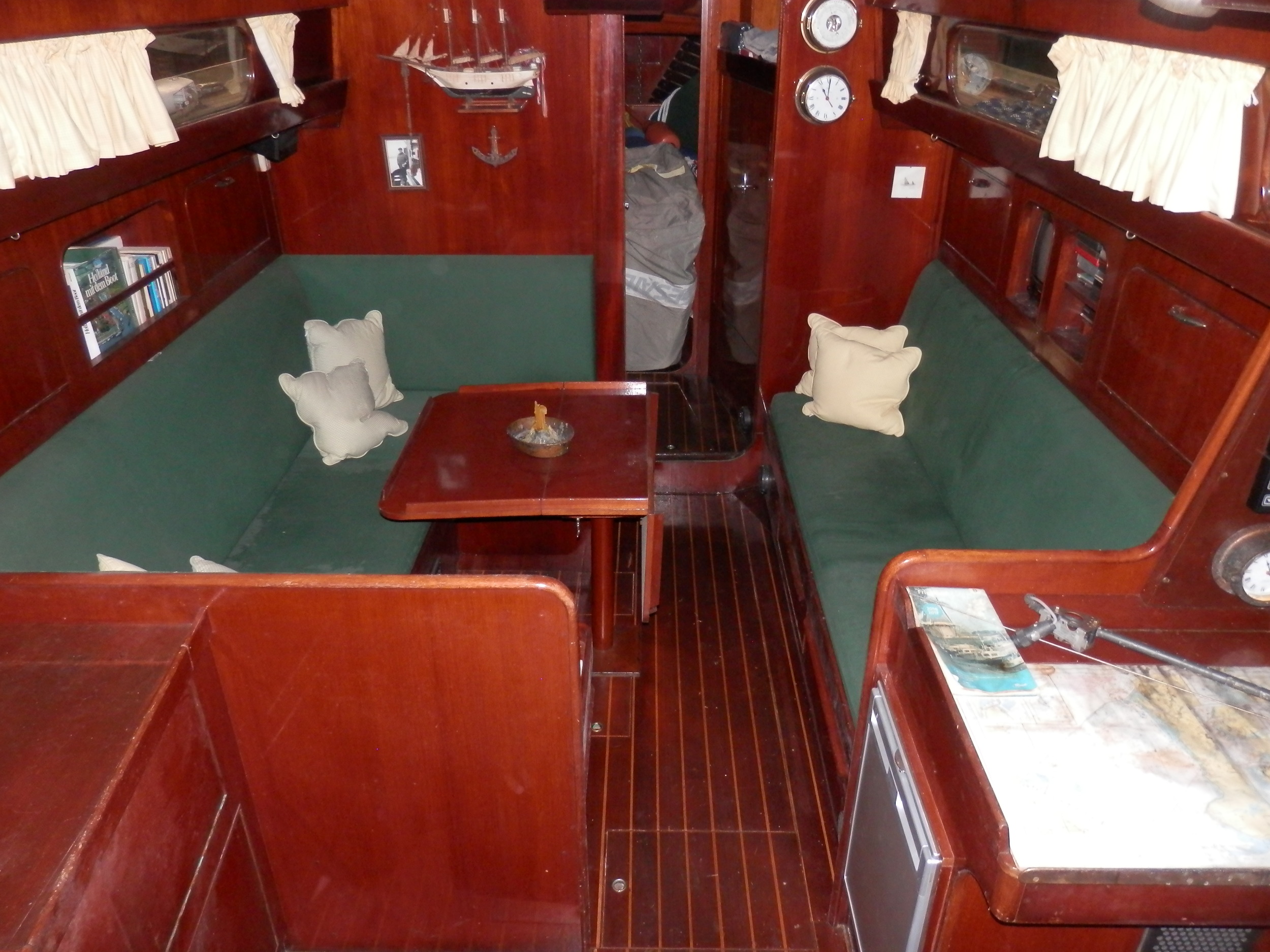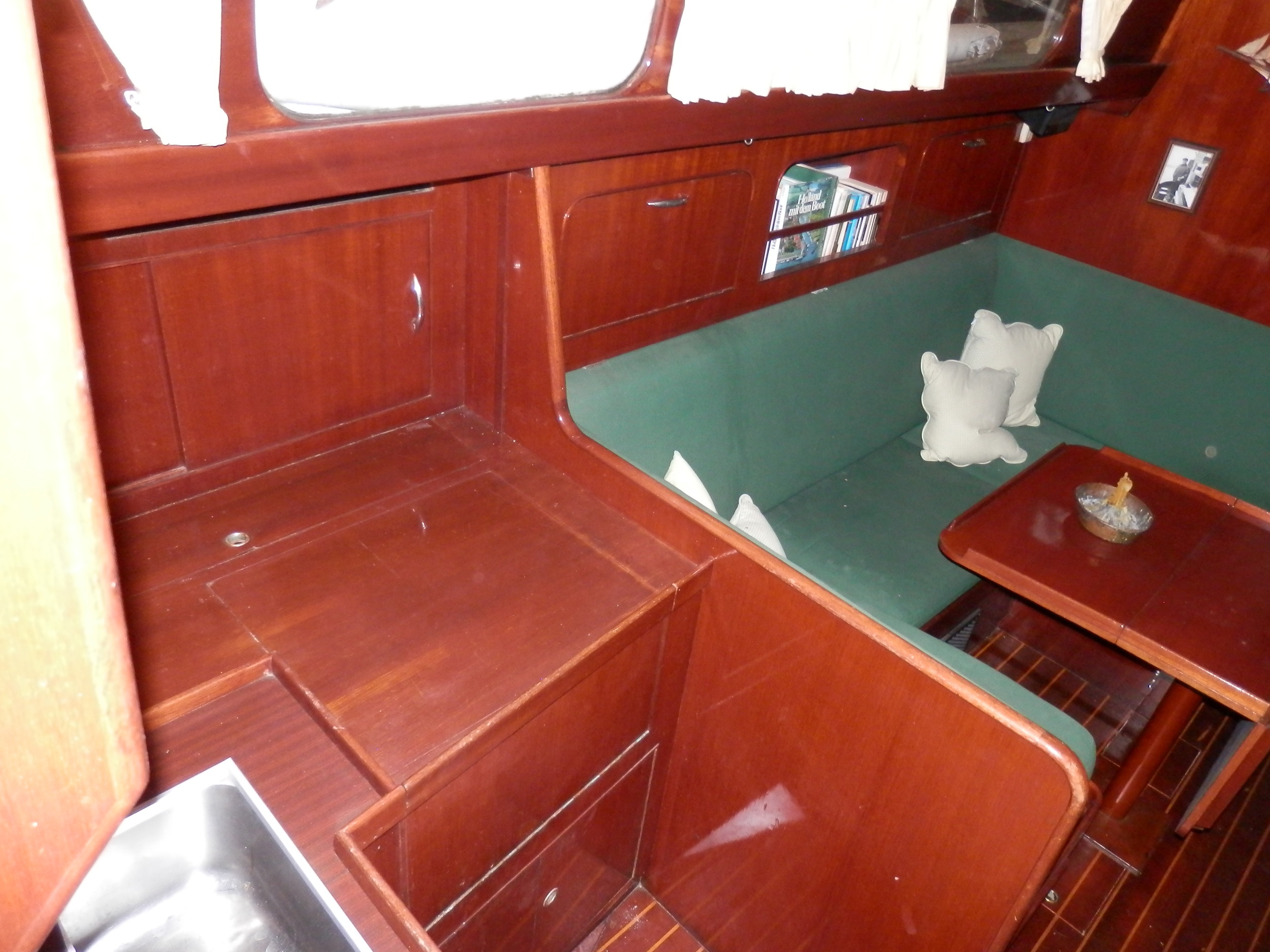 Een polyklassieker uit de 70-er jaren. Oerdegelijk gebouwd en met voortreffelijke zeileigenschappen. Het schip heeft enig technisch en cosmetisch achterstallig onderhoud. 1. In de voorplecht is de verankering van het dek met de steven (ingelamineerd staal) verrot (zie laatste foto). Om dit te repareren moet het voorschot van het vooronder en gedeeltelijk de bedden worden gedemonteerd. 2. Het teakdek ligt gedeeltelijk los en is slecht. 3. De randen van de kajuit zijn van binnen en buiten plaatselijk zacht. Mooi zeilplan met rolfok- en rolzeil (1992) van goede kwaliteit. Voor informatie en bezichtiging: 0031-6-10359729.