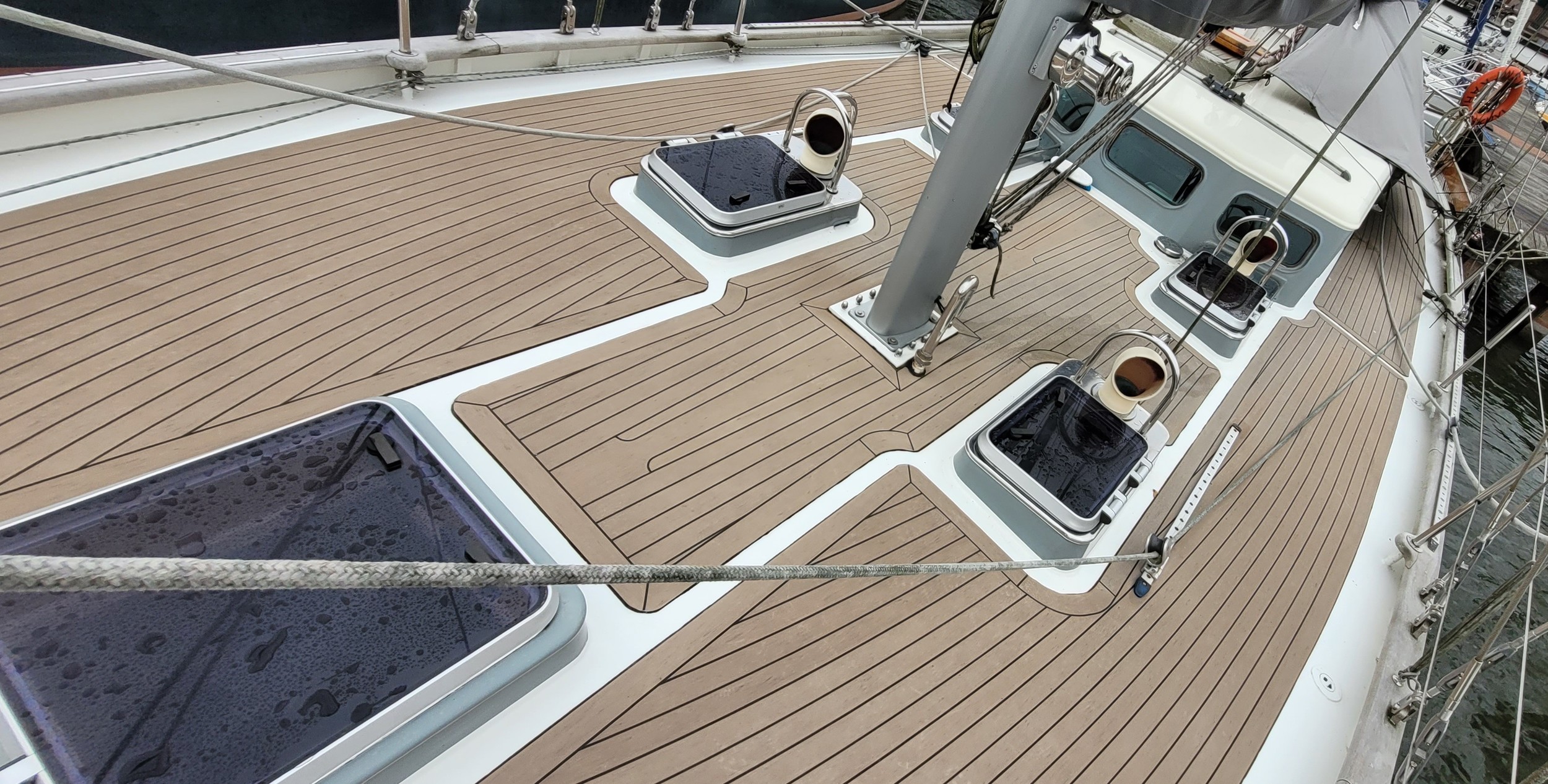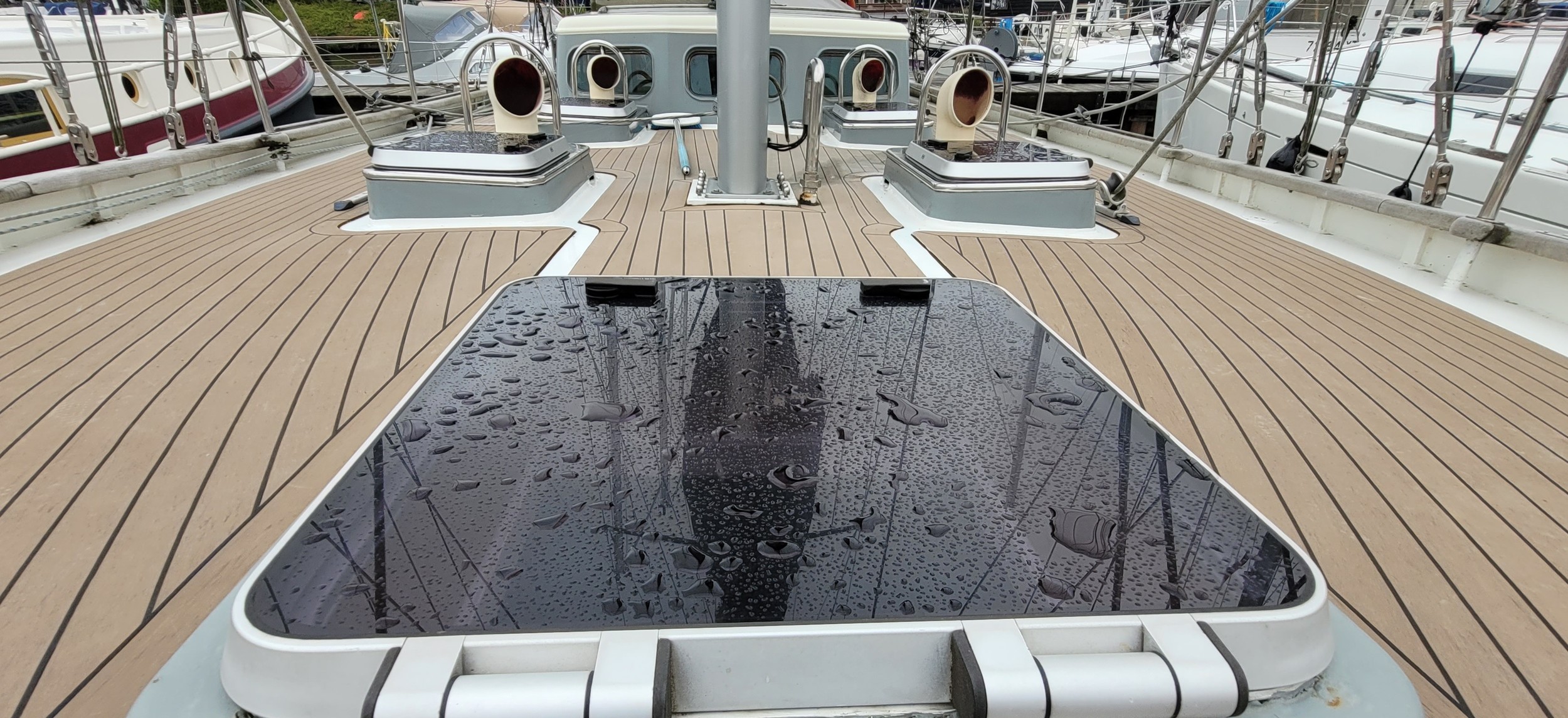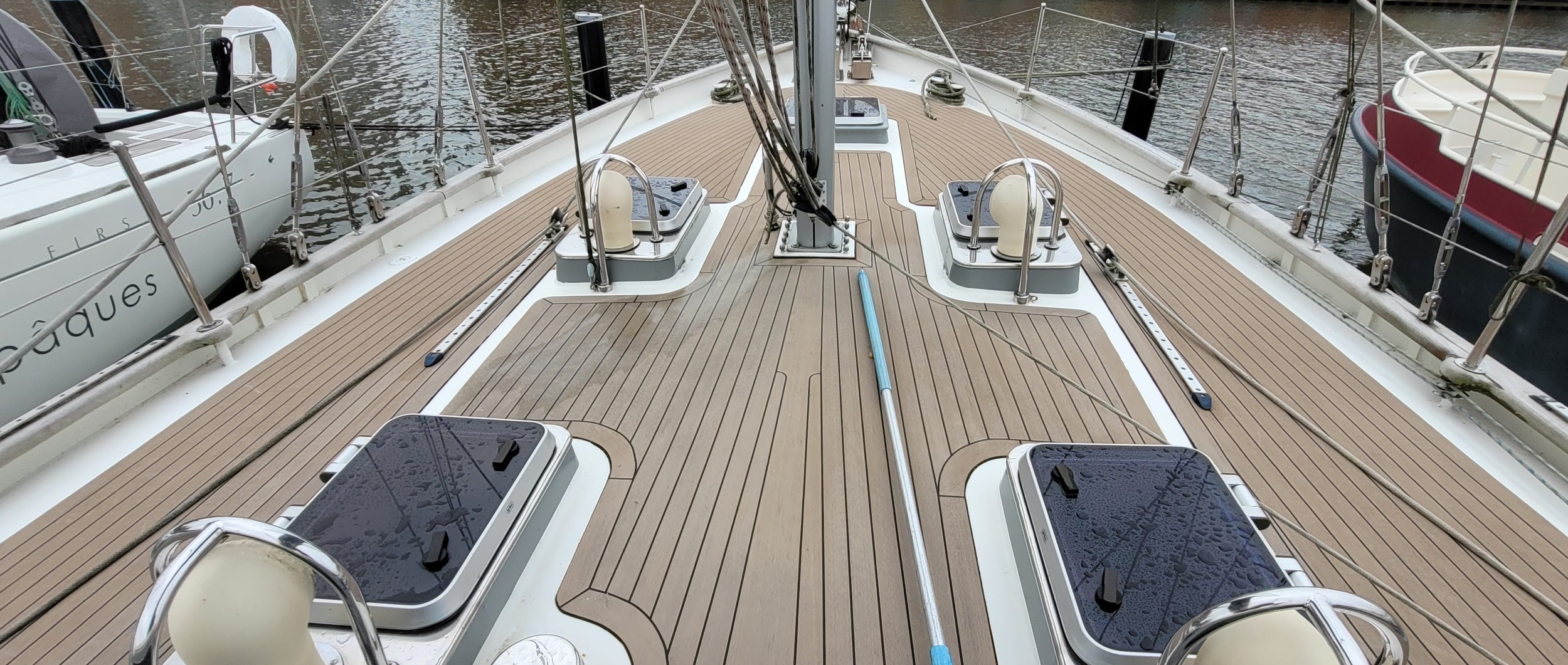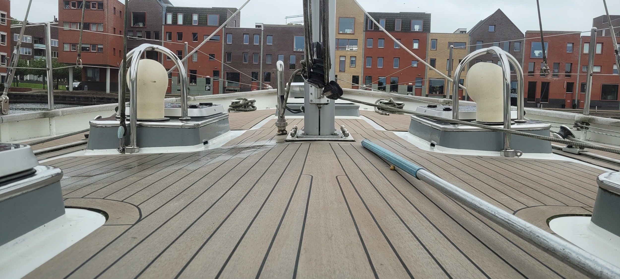 Flexiteak in 2017 door De Gier Jachtwerf te Enkhuizen gelegd+ 5 nieuwe Gebo luiken.