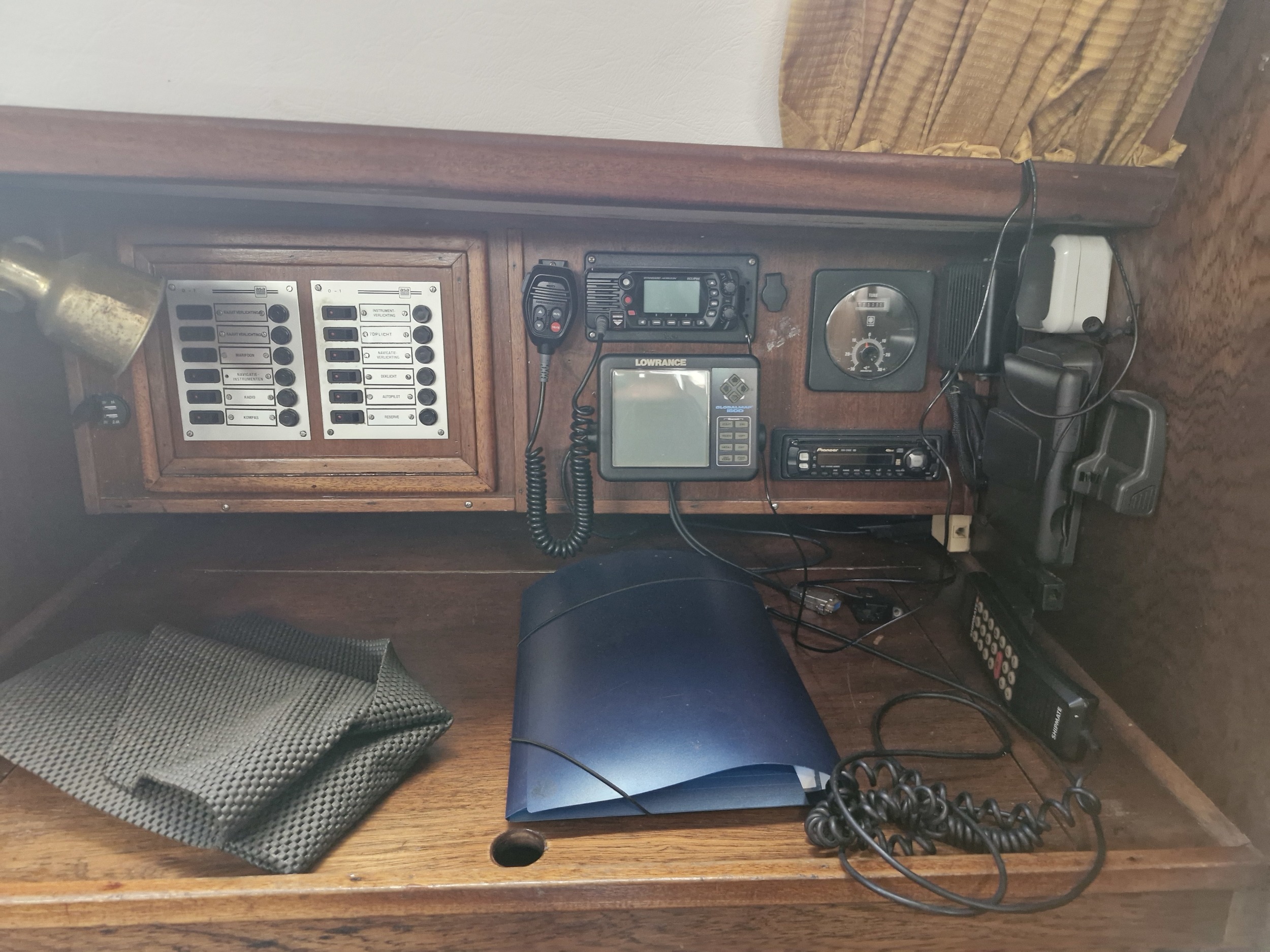 Qua tuigage is deze Van de Stadt 34 voorzien van een mast met staaldraad-stagen en heeft het een grootzeil en genua, waarbij de schoten door de kuip bediend kunnen worden. Navigatie- en elektronica-apparatuur zijn voorhanden, naast systemen als VHF, GPS en dieptemeter.